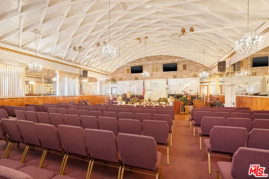 The Worship Center was renovated & designed to be a grand and inspiring sanctuary. Soaring vaulted ceilings create an open, light-filled atmosphere, and elegant crystal chandeliers add a touch of sophistication and reverence. The sanctuary comfortably accommodates approximately 225 congregants. At the front of the sanctuary, the thoughtfully designed pulpit provides space for a full choir & band, ideal for worship services and special events. It is fully equipped with a professional sound system, sound booth, and musical instruments, ensuring exceptional acoustics and seamless production for services, ceremonies, and events. An impressive baptismal pool is showcased behind a glass display that enhances the space’s spiritual presence. There is a Fellowship Hall that provides a highly functional and versatile gathering space with wall-mounted televisions, seating for about 100 guests, and a fully equipped commercial kitchen. The hall is a perfect venue for celebrations and community events.Endless multifamily development potential with valuable zoning incentives, including State Enterprise Zone, Housing ElementSites, and Transit Priority Area designation, just minutes from SoFi Stadium and Intuit Dome. Professional photos Tuesday1/20