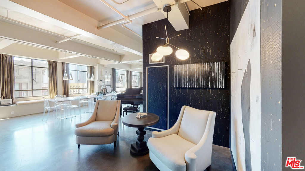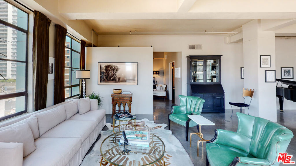 Exceptional corner loft at the iconic and historic Eastern Columbia building, an Art Deco landmark. Owners currently benefit from the coveted Mills Act contract, which provides nearly 70% off property taxes annually. Situated on the 7th floor on the highly desirable southwest corner, this light-filled live/work loft includes a RARE DEEDED STORAGE UNIT. The stylish loft features polished concrete floors, tall ceilings, and a breathtaking display of windows spanning the south and west sides. Enjoy the bespoke bedroom suite tucked away with a Kelly-Wearstler-designed ensuite bathroom with linen storage, and a fully built-out closet. For guests, there is a custom murphy bed hidden behind an original art wall, and a second bathroom with full shower. An entertainer’s dream, the open plan kitchen flows into the spacious and flexible living area where you’ll find custom banquette seating underneath the windows for more storage. Central heat and new AC, W/D, 1 assigned prime parking space in the garage, and an EXTREMELY RARE DEEDED STORAGE UNIT make this loft an exceptional opportunity. HOA Dues include water, trash, gas, 24/7 reception, parking. The landmark building features 24/7 front desk security, iconic clock tower with rooftop pool, hot tub, sundeck, courtyard, and fitness center. Within blocks to all the best of DTLA, such as the Proper, Hoxton, Whole Foods, Mykita, The Broad, Fashion District, GRAMMY Museum, Grand Central Market, City Market South, Walt Disney Concert Hall, the upcoming Erewhon Market a block away, and more.