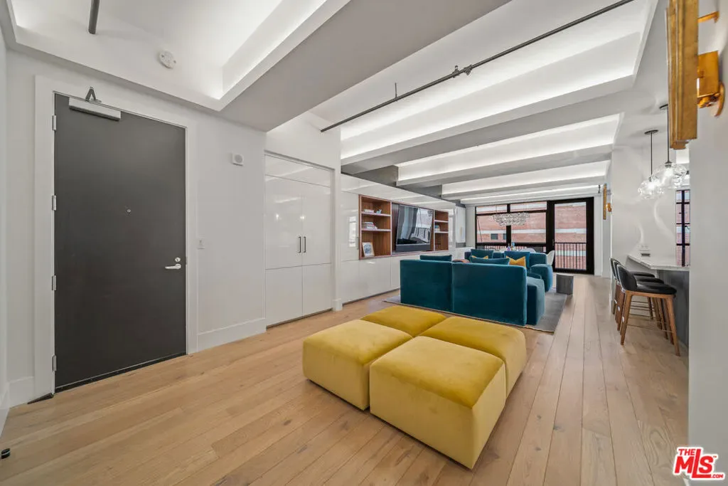 Situated in the coveted Eastern Columbia building is this fully remodeled, meticulously designed residence that currently benefits from the Mills Act contract, offering a property tax savings of nearly 70% annually. Renovated from top to bottom, this well-appointed 8th floor loft features 1730sf of space that combines form and function. The impeccably imagined residence features 2 beds, 2 baths, plus office/den, rare balcony with views of the Orpheum marquee and DTLA skyline, and 1 garage parking space w/ EV charger. An entertainer’s dream, the loft boasts a chef-grade kitchen, complete with Wolf and Miele appliances, induction cooktop, integrated Subzero fridge and massive heat-resistant custom porcelain island with wine fridge. The open plan dining and living dining area features plenty of built-in storage, a dry bar, and flows into one of the few private balconies that has a view of the iconic Orpheum sign and the Broadway scape below. With no detail overlooked or spared, there is a primary bedroom with ensuite bath and massive closet, a second bedroom with full closet built-ins, and sliding framed glass enclosures. The den/office/flex room off the kitchen also has glass doors for privacy. Tall coffered ceilings with ambient lighting, wide oak hardwood floors throughout, fully controlled custom and designer lighting fixtures, motorized shades, built-ins, central heat and AC. With nearly $1M in renovation costs, everything has been custom designed to create the perfect downtown loft experience. 1 covered garage parking space w/ EV charger is assigned to the unit. The Eastern Columbia is known for its iconic clock tower, rooftop pool and sky deck, and residents also enjoy a gym, courtyard, grand lobby, 24/7 reception desk, garage parking. Within blocks to all the best of DTLA, including The Broad, Walt Disney Concert Hall,, The Bloc, Fig&7th, Crypto.com Arena, Whole Foods, upcoming Erewhon Market, Rossoblu, Dama, Ace Hotel, Proper Hotel, Hoxton, Grand Central Market, The Conrad, Fashion District, and more.