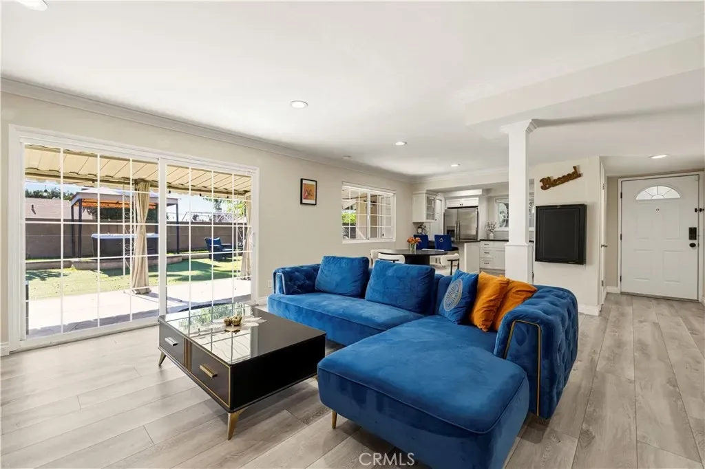 Prime gem tucked away in a quiet, desirable pocket of Sun Valley — where everyday living feels like a private retreat. From the moment you arrive, the inviting curb appeal, drought-tolerant landscaping, and charming orange tree create a warm and welcoming first impression. Inside, abundant natural light pours through expansive windows and sliding glass doors, filling the spacious living and dining areas. Lovingly maintained, this single-level home features a cozy fireplace, recessed lighting, new flooring, and an updated kitchen with granite countertops and a breakfast bar—perfect for both daily living and effortless entertaining. The open floor plan creates a seamless flow between the living room, dining area, and kitchen. Sliding glass doors lead to your own backyard sanctuary. A covered patio, vibrant water-wise turf, native landscaping, mature guava tree, and relaxing spa create a peaceful outdoor escape—ideal for al fresco dining, entertaining guests, or simply unwinding under the California sky. Designed with comfort and efficiency in mind, the home includes a tankless water heater and EV car charger. The two-car garage offers excellent potential for conversion into an ADU, multigenerational living space, or additional income opportunity (buyer to verify). Recent upgrades include new flooring throughout, a tankless water heater, updated bathroom vanities with reglazed tubs, and a full appliance package including refrigerator, dishwasher, and washer/dryer. Additional highlights include an alarm system with cameras, coded entry access, paver driveway, EV charger, and a backyard spa with electrical outlets ready for outdoor entertaining. This 4-bedroom, 2-bath home features a spacious primary suite with a private bath and a flexible layout with income potential. Conveniently located near shopping, dining, parks, hiking trails, and freeway access—and just minutes from Burbank, major studios, and the airport—this home offers the perfect balance of peaceful retreat living and everyday convenience.