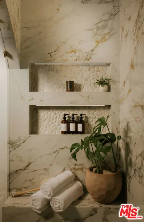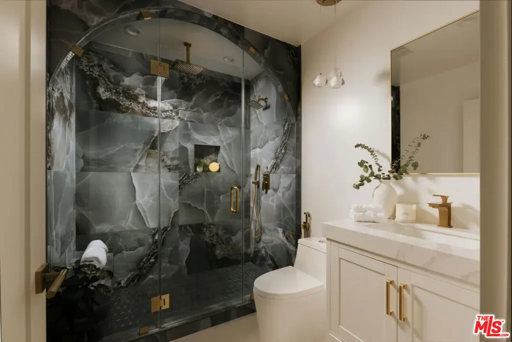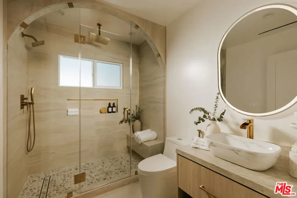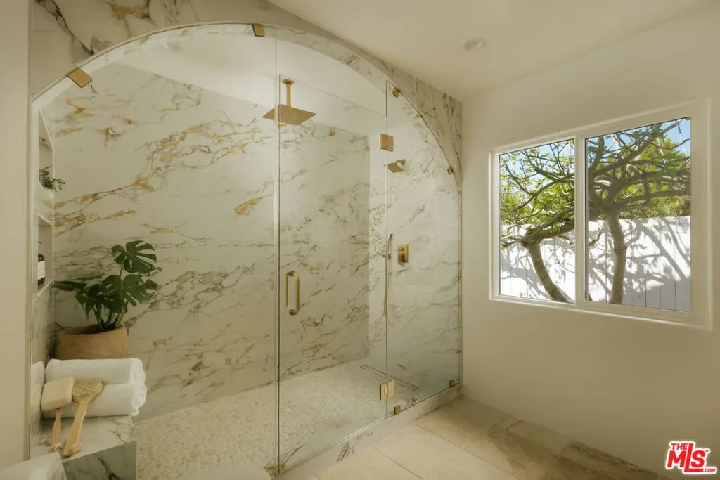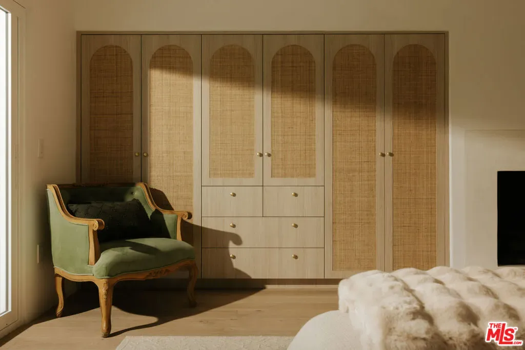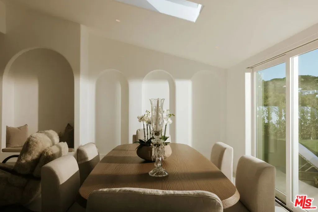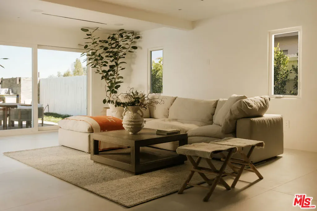 A striking expression of Organic Modern design with Contemporary Mediterranean influences, this fully reimagined single-story residence sits on a 14,013 sq ft lot capturing breathtaking canyon and city views. Spanning 2,757 square feet with 4 bedrooms and 4 bathrooms, the home was taken down to the studs and meticulously rebuilt, resulting in a designer showcase where every detail has been thoughtfully curated.An inviting open-concept floor plan unfolds beneath soaring ceilings accented by graceful architectural arches and skylights that bathe the interiors in natural light from morning through sunset. Walls of sliding glass doors dissolve the boundary between indoors and out, creating effortless flow ideal for both daily living and sophisticated entertaining.At the heart of the home, the chef’s kitchen makes a striking statement, featuring leathered stone waterfall countertops, an oversized gathering island, abundant cabinetry, a Thermador range with custom plaster hood, and elegant floating shelves. Oversized porcelain tile grounds the main living areas, while wide-plank hardwood floors add warmth to the private bedroom quarters.The outdoor spaces unfold as a private retreat designed for both relaxation and entertaining, complete with a welcoming porch framed by a grassy yard and artful landscape lighting, a sparkling pool and jacuzzi, outdoor kitchen, firepit lounge, and lush grassy areas in the front and backyardperfect settings for alfresco dining and sunset gatherings.Inside, gas fireplaces in the living room and primary suite finished with touches of Venetian plaster lend subtle vintage elegance. The primary suite offers expansive horizon views, generous closet space, and a breathtaking spa-inspired bathroom with a dramatic stone walk-in shower.The finished and insulated garage, with individual AC offers exceptional versatility and has been thoughtfully prepared to function as an extension of the living spaceideal for a gym, studio, office, or additional flex area.Additional features include a double-zone HVAC system, two AV charging stations, and a tranquil setting within the coveted Kenter Elementary School districtdelivering a sophisticated California lifestyle where design, comfort, and natural beauty converge.