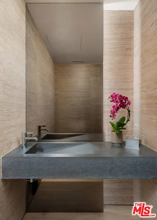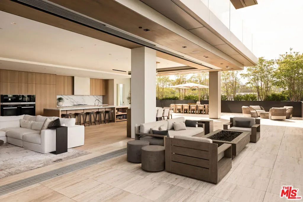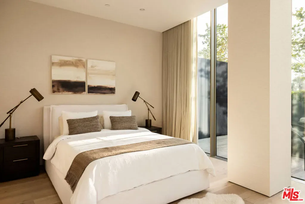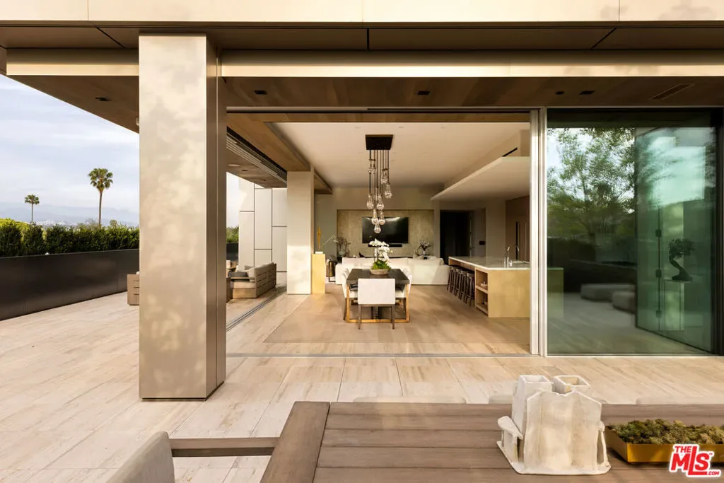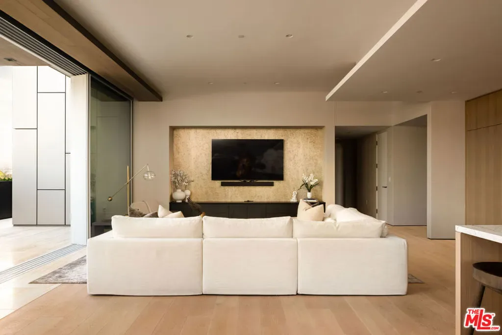 Introducing an extraordinary residence in the heart of the West Hollywood Design District a refined, full-service luxury offering within a striking architectural landmark by internationally acclaimed Olsen Kundig. Perfectly positioned on a premier corner, this expansive single-level home spans approximately 3,210 square feet and is complemented by an unparalleled 1,600+ square foot private terrace, creating a seamless blend of sophisticated interiors and elevated outdoor living. Floor-to-ceiling glass walls frame sweeping north-facing views of the iconic Hollywood Hills, glittering city lights, and the renowned Pacific Design Center, while western exposures deliver breathtaking sunset vistas. Natural light floods the residence from nearly every room, enhancing the home’s clean architectural lines and elegant finishes. Thoughtfully designed for both everyday living and grand-scale entertaining, the open-concept layout features expansive living and dining areas that flow effortlessly to the terrace, ideal for al fresco dining, lounging, and hosting under the Los Angeles skyline. The sleek chef’s kitchen is appointed with premium appliances from Sub-Zero, Miele, and Gaggenau, paired with custom cabinetry and refined detailing. The residence offers three spacious bedrooms, each with en-suite baths, along with a stylish powder room. The luxurious primary suite serves as a tranquil retreat, complete with a spa-inspired bath, generous closets, and electric window coverings. An additional flexible bonus room, currently utilized as a private office and theater, adds versatility for today’s lifestyle. Residents enjoy an unmatched level of service and amenities, including 24-hour concierge and security, valet parking, a state-of-the-art fitness center, and beautifully curated resort-style outdoor spaces. Two dedicated parking spaces complete the offering. Ideally located along Beverly Boulevard, this residence offers immediate access to renowned destinations, premier fashion boutiques, acclaimed art galleries, gourmet markets, and some of the city’s highest-rated dining, all within a highly walkable and vibrant neighborhood near the world-class medical facilities of Cedars-Sinai Medical Center. A rare opportunity to own a design-forward residence that embodies privacy, prestige, and effortless luxury living in one of Los Angeles’ most coveted enclaves.