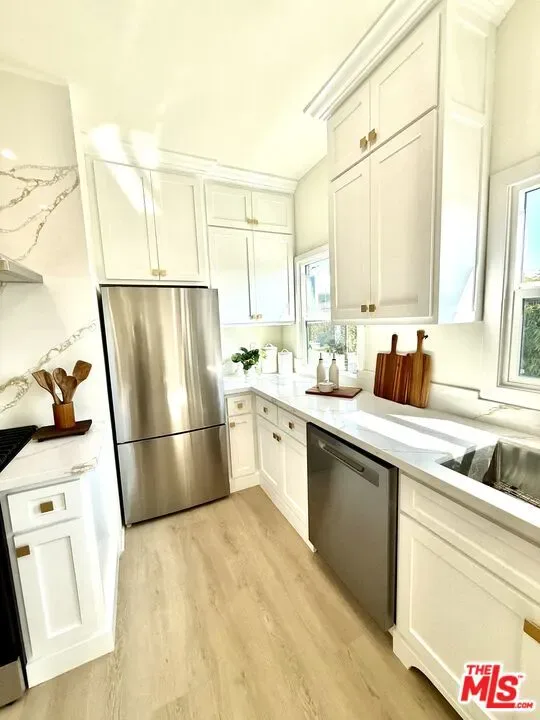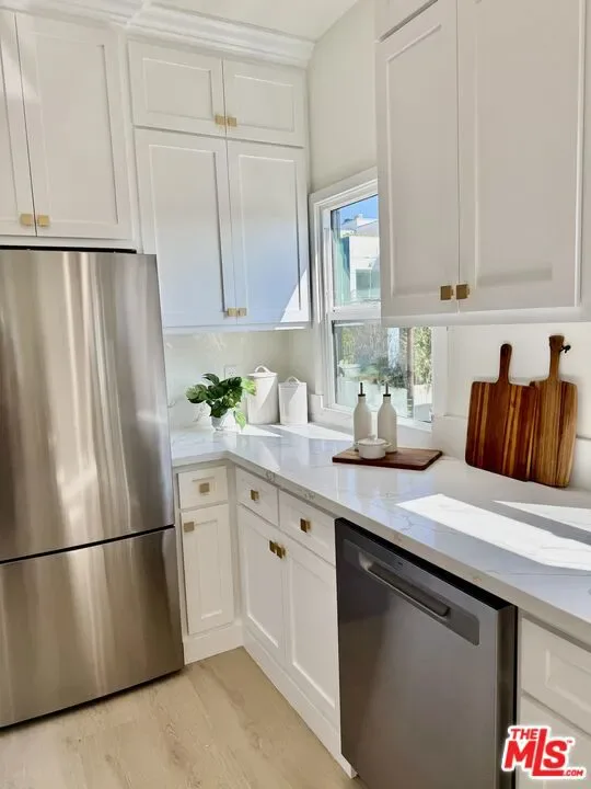Magnificently remodeled with taste and elegance. This gorgeous unit with a private entry, offers 1,359 square feet of sprawling open floor plan with a large sun-field living room and a large dining room open to the gourmet kitchen with custom cabinets, custom quartz countertops and top of the line appliances. Large bedrooms with walk-in closets. Recessed lighting, hardwood floors, in-unit laundry and much more. Located in one of the most sought after locations of west Hollywood, This unit is designed for luxury, comfort, and entertaining.
