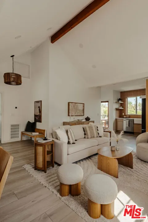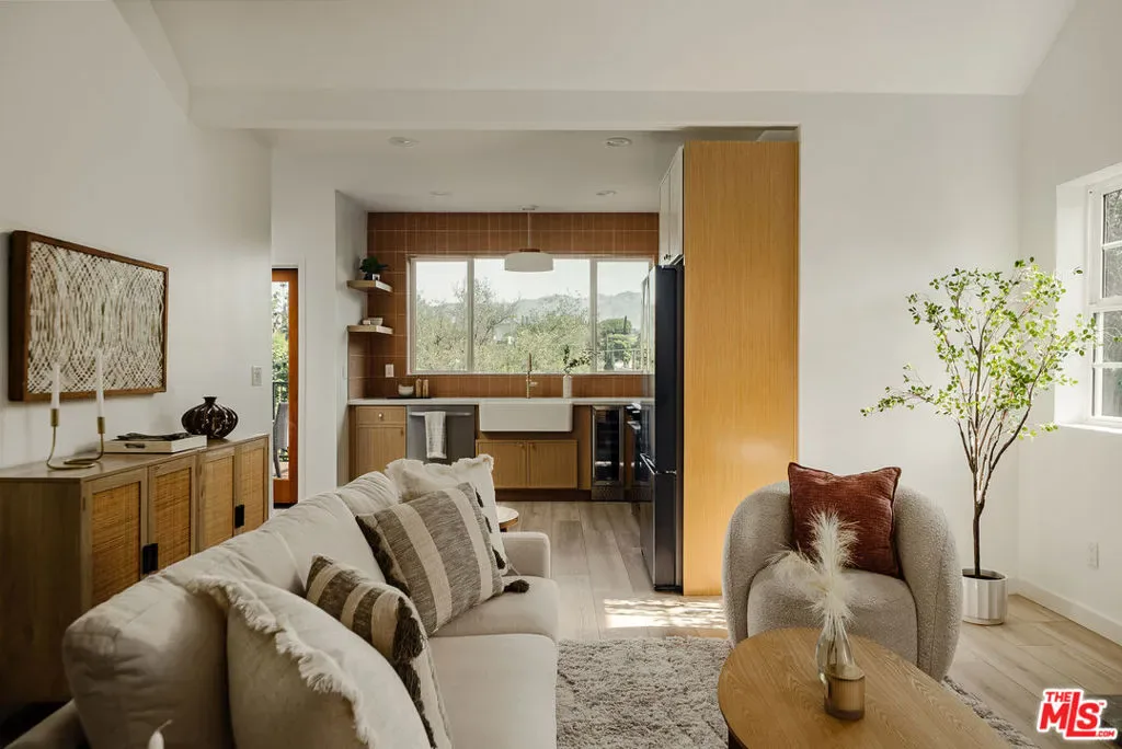 Welcome to your hillside sanctuary, perfectly perched on one of the most coveted streets at the base of Mount Washington in the vibrant heart of Highland Park. This stunning property seamlessly blends classic character with bespoke modern sophistication, offering sweeping, panoramic views of the San Gabriel Mountains and the rolling scenic topography of the neighborhood. Step inside to discover a sun-drenched, open-concept floor plan elevated by dramatic vaulted ceilings that highlight the home’s airy, expansive atmosphere. The living space flows effortlessly into two generously sized bedrooms with ample closet space, accompanied by a beautifully crafted bathroom featuring a sleek double-sink vanity and custom terrazzo tile for a true touch of designer luxury. At the heart of the home is a show-stopping, renovated kitchen boasting new slim shaker cabinets, pristine quartz countertops, custom shelving, and premium brand-new appliances, including a built-in wine refrigerator. Oversized, picturesque windows frame the breathtaking vistas, ensuring every meal is a visual experience. Peace of mind comes easily with an array of extensive upgrades throughout, including a newer roof, gleaming newer floors, updated plumbing, new windows and doors, elegant recessed lighting, and a modernized HVAC system with NEST climate control. Below the main level, a spacious basement area provides the perfect solution for all your storage needs while also conveniently housing the laundry. Need even more space? A fully finished, custom-built shed provides the ultimate flexible bonus are a perfect for a quiet home office, creative art studio, or playroom. Step outside to discover the property’s crown jewel: a brand-new, expansive deck offering an unparalleled vantage point with amazing, unobstructed views of the mountains and valley below, making it your ultimate haven for dining al fresco or enjoying evening wine under the stars. Set upon an expansive 7,500+ square-foot lot, the outdoor grounds present endless possibilities to add an ADU, expand the existing footprint, or build the resort-style pool of your dreams (rendering in photos). Beautifully illuminated, drought-tolerant landscaping makes this outdoor oasis as eco-friendly as it is effortless to maintain. Located just minutes from the trendy dining, cafes, and boutique shopping of Highland Park and Eagle Rock, and a short, idyllic stroll to Cleland Park near the Jessica Triangle, you are perfectly positioned to meet neighborhood friends and enjoy the absolute best of Eastside living. Don’t miss your rare opportunity to claim this incredible, view-swept Highland Park gem!