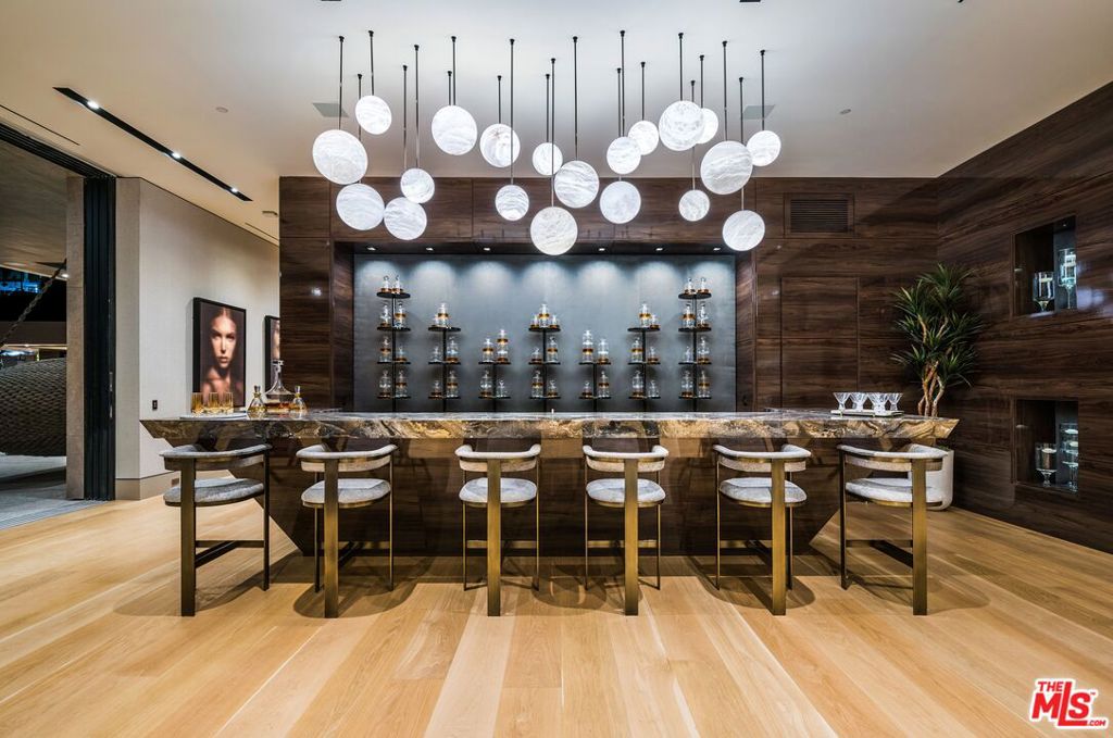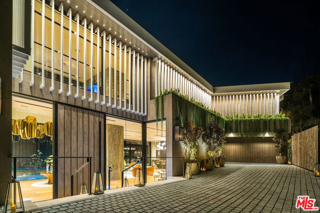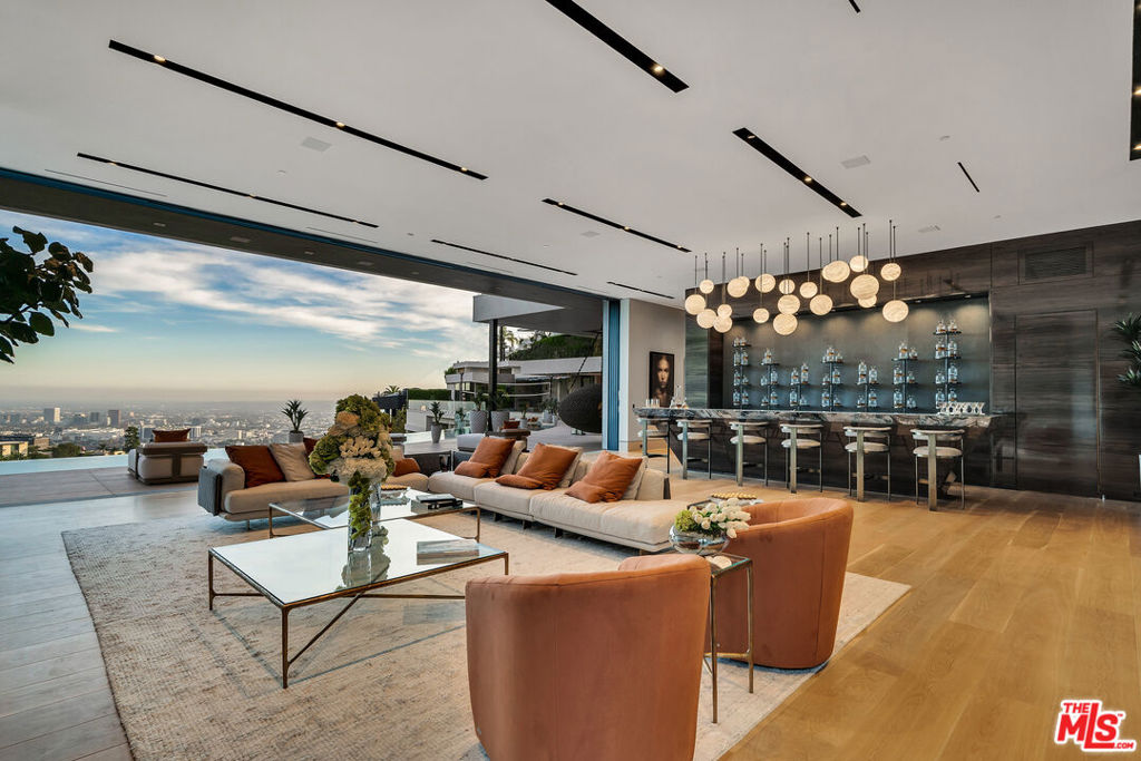 Seller accepts crypto! Conceived and executed with the modern mogul’s ambition top of mind, this newly constructed palace offers sweeping, uninterrupted views of the canyon and Los Angeles skyline, spanning 500 feet of frontage in a coveted Bird Streets enclave. Enter beneath a bespoke chandelier and cascading fountains into a 13-foot living room anchored by layered stone fireplaces. The Arclinea kitchen opens to a European-inspired wine room illuminated by a sculptural pendant. Floor-to-ceiling glass panels dissolve the line between indoors and outdoors, revealing expansive terraces with an 18-foot sunken fire pit, a 100-foot infinity pool, a 30-person spa, and a sand volleyball court, each set against sweeping vistas. The primary suite serves as a private retreat, featuring a reading vestibule, a 1,500-square-foot balcony with Jacuzzi and fire features, dual dressing rooms, and a travertine-clad bath with twin soaking tubs and panoramic views. Tailored for both comfort and spectacle, the home also includes a command center-style office, a full screening room, a gym, hookah and meditation lounges, a panic room, a shoeshine station, and more. Designed with intent, the residence is as functional as it is striking. Revel in the pinnacle of modern elegance, all while being enveloped by some of Southern California’s most breathtaking views.