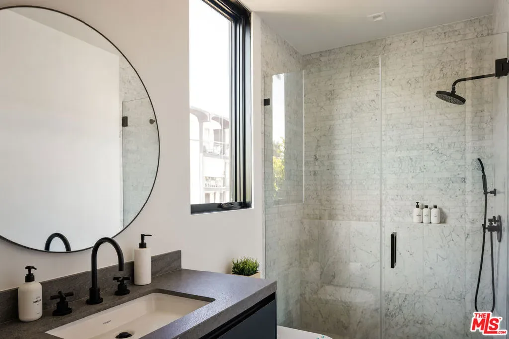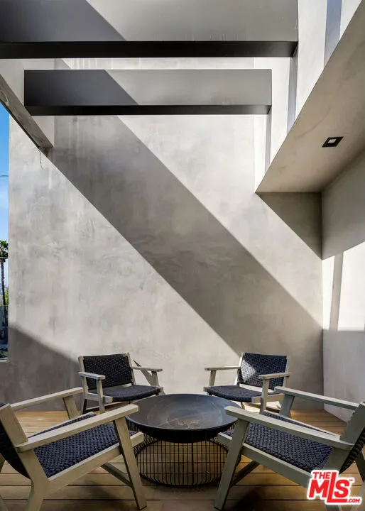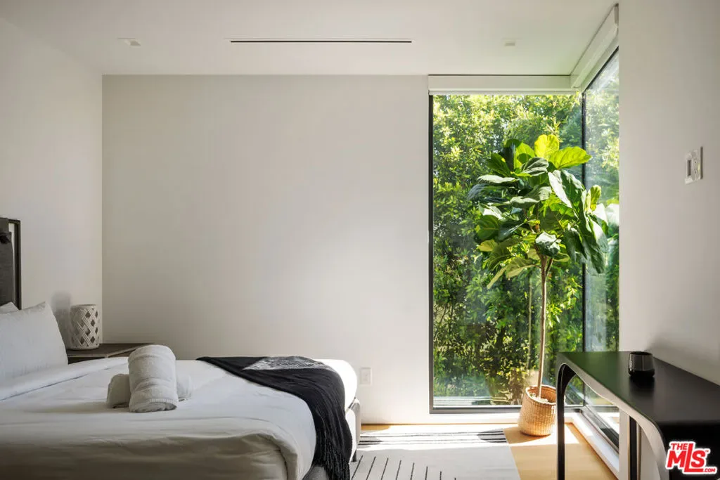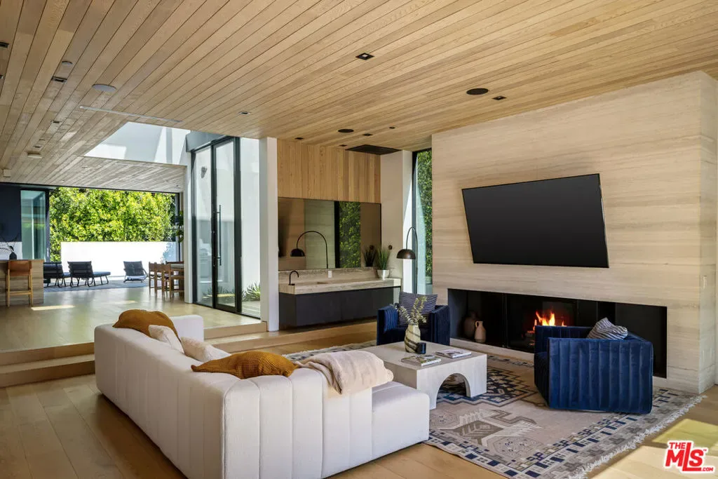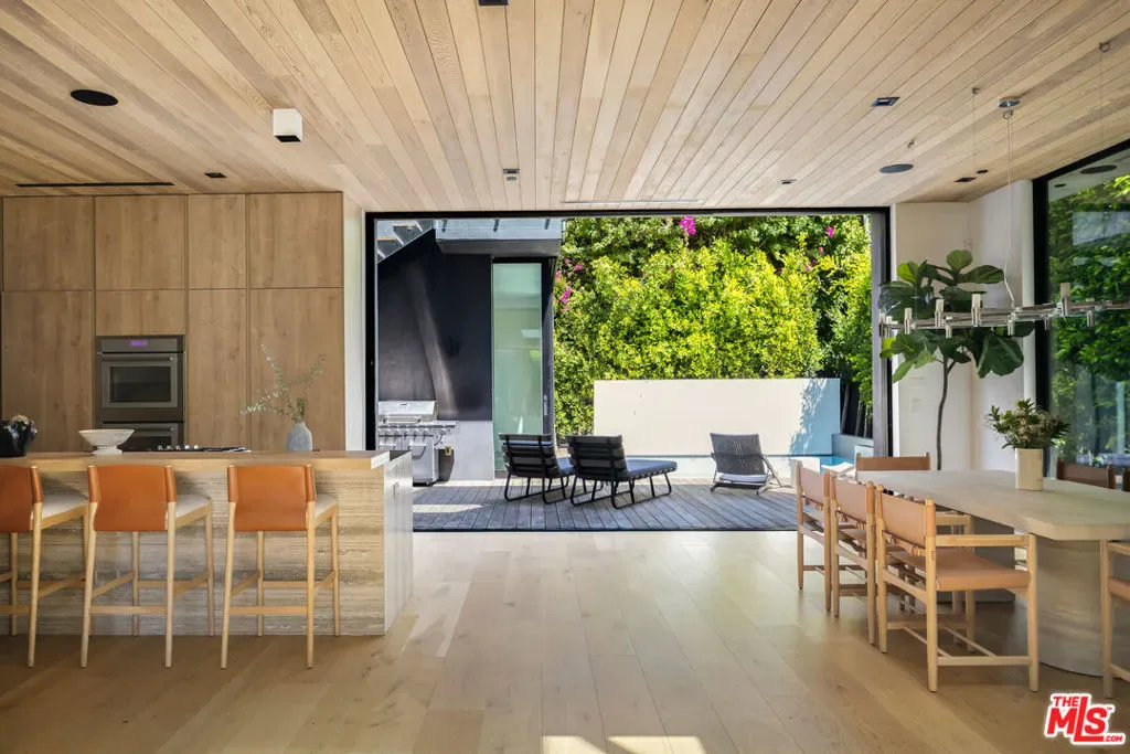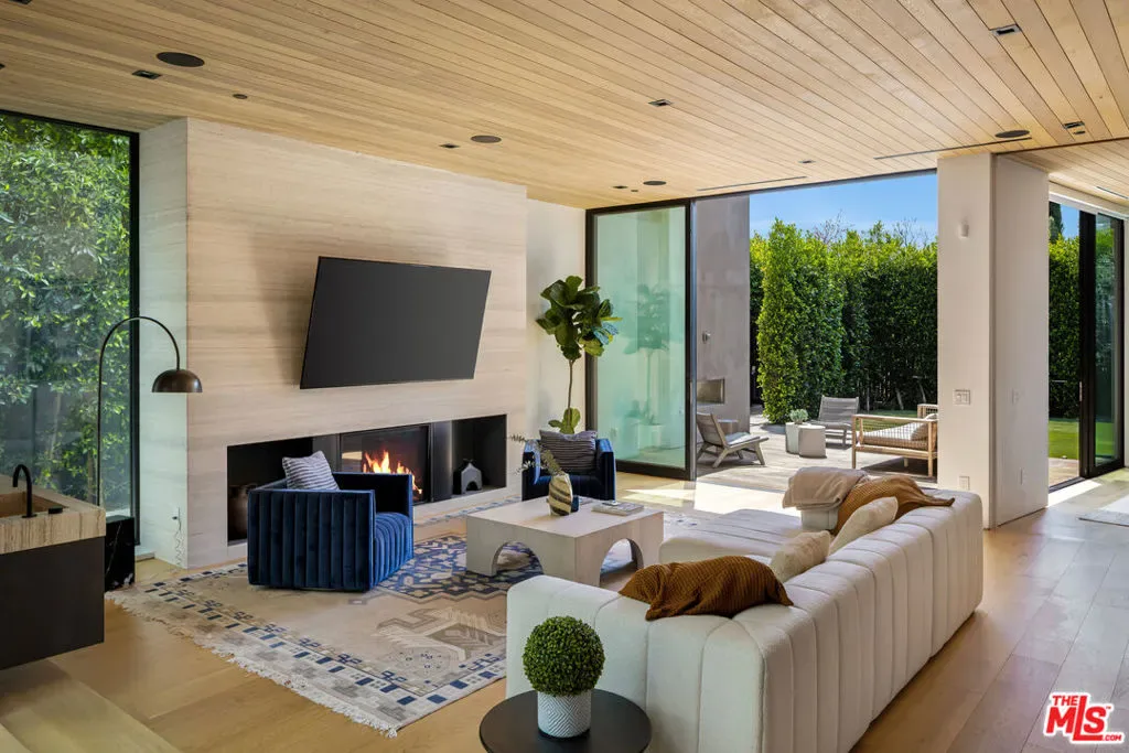An architecturally striking modern compound set on an expansive private lot in prime Beverly Grove, offered fully furnished and designed for elevated indoor-outdoor living. This resort-style contemporary smart home blends warmth and sophistication through an open floor plan, rich oak flooring, and expansive floor-to-ceiling glass that fills the interiors with natural light. The main level is thoughtfully composed for both daily living and entertaining, featuring a fire-sided living area, formal dining space, and a chef’s kitchen outfitted with premium stainless-steel appliancesseamlessly opening to curated outdoor entertaining areas. Gated and private, the backyard retreat includes a custom pool and spa, along with multiple lounge spaces ideal for relaxed gatherings or refined entertaining. Floating wood staircases lead to the upper level, where the primary suite is a serene sanctuary featuring a fireplace, floor-to-ceiling windows, a private patio, a walk-in closet, and a spa-like primary bathroom. Two additional en-suite bedrooms and a dedicated laundry room continue the home’s cohesive and refined design. Crowning the residence is a spectacular rooftop deck with panoramic city views, complete with dining and lounge areas and a wet bar, creating an exceptional setting for entertaining. Ideally located moments from The Grove, Beverly Center, world-class dining, shopping, and nightlife, with easy access to the Sunset Strip and major freeways, this one-of-a-kind offering delivers the ultimate blend of architectural sophistication, lifestyle appeal, and effortless luxury living in Beverly Grove.