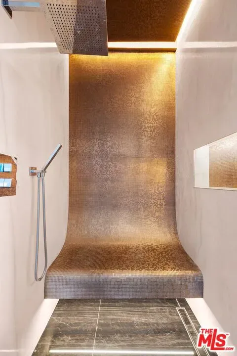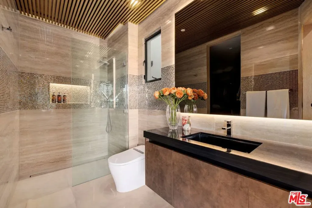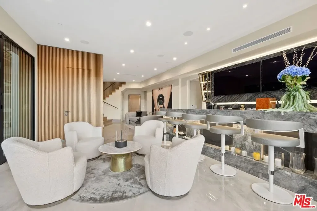 Located within the sought-after East Gate of prime Bel Air, and set behind its own private gates among some of Los Angeles’ most significant estates, this impeccably designed and rebuilt residence offers a rare combination of premier location, exceptional craftsmanship, and unobstructed views. Spanning approximately 4,400 square feet across three gracious levels with direct garage access from the semi-circular motor court and all served by a private elevator, the home has been conceived with an unwavering commitment to quality and refined taste. Soaring 11-foot ceilings and an open, flowing floor plan create an effortless sense of living, while walls of glass dissolve the boundary between interiors and the spectacular canyon and pastoral views. Rare hand-picked marble, white oak doors, and panels are woven throughout, lending warmth and architectural distinction at every turn. The state-of-the-art kitchen is appointed with Miele appliances and custom Antracita Pearl cabinetry a seamless blend of beauty and performance. The primary suite is a true sanctuary, complete with a private sitting room, generous terrace, and an expansive walk-in closet outfitted with custom Milcasa doors. The spa-inspired primary bath features heated floors, a Copper Mosaic shower seat, and custom bronze mirrors. For guests or children, the home has three more en-suite bedrooms and a bottom floor meticulously designed for hosting with complete accommodations. The outdoors lush, quiet, and private grounds frame a resort-style pool and spa, multiple large terraces ideal for al fresco entertaining, and an outdoor kitchen and shower. Additional highlights include a wellness studio equipped with a lounge, a sauna, and a full bath. A rare offering on one of Bel Air’s most prestigious corridors where exceptional design, absolute privacy, and breathtaking views come together without compromise.