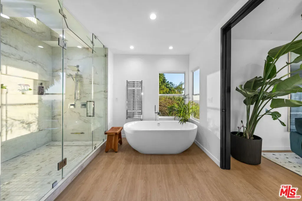 Modern Sophistication with a Big Sur Soul Experience a fresh, modern lifestyle that feels less like a city residence and more like a private stay at the Post Ranch Inn. Perched above Los Angeles in tranquil Los Feliz Oaks, this architectural residence is the find you have been looking for. 180 degree views of sparkling city lights, the Hollywood Hills, Hollywood Sign and ocean beyond, Walk into the home and be surprised by the the scale of the living room and walls of glass, you would never know this view was behind the hedged and gated front of the house. The kitchen design inspires gathering and is kitchen show worthy for displaying your creations and serving guests. The chef’s kitchen, has an oversized island with built in storage, Wolf stove, Viking refrigerator, dual stainless sinks, and Bosch dishwasher. Extensive upgrades and designer finishes elevate the home throughout. A first floor bedroom offers flex space for guests or a front-door entry office if you work from home. The primary sleeping quarters is a true oasis, featuring an ensuite bath with soaking tub and luxury shower, custom walk-in closet, and sliding doors out to a city view deck. There are two additional bedrooms down the hall and well appointed second bath. Additional amenities include bedroom level laundry room, EV-ready garage with 220V outlet, upgraded electrical and newer HVAC systems, tankless water heater. Bedroom level view deck with fire pit, custom upholstered lounge and jacuzzi to unwind at the end of the day complete the private, tranquil setting. This is a great street for people who love to walk their dog, get in their steps or want to be near Griffith Park, the Observatory, the Greek Theatre, or freeway close for commuting. A must see at sunset when the light show begins and the city illuminates.