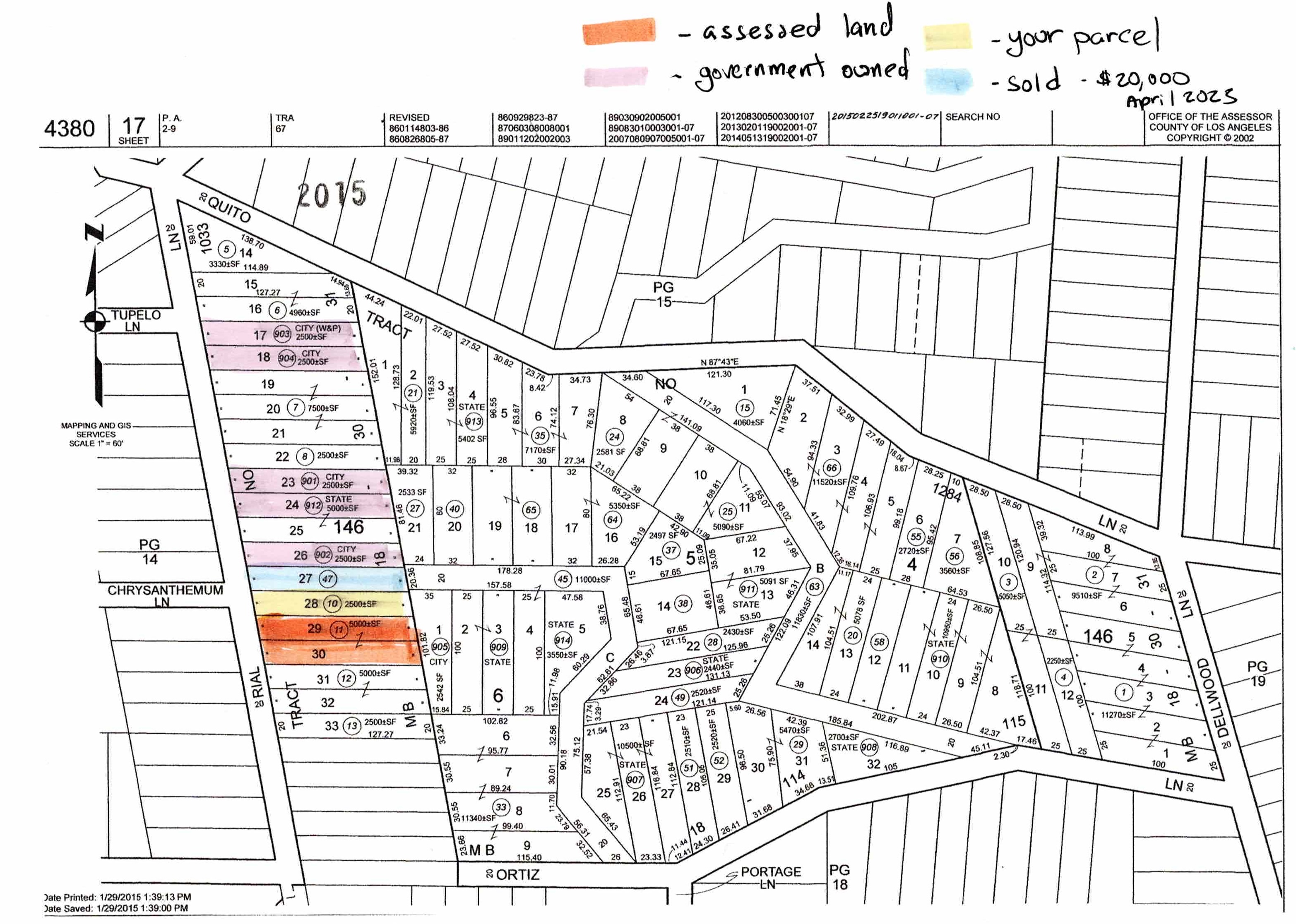 Adjacent to city-owned land (potential future access negotiations). It is part of three contiguous 2,500 SF parcels where this lot is on one end and a government owned lot on other end, with a middle parcel that recently sold. This creates a total of 5,000 SF of private land that could be attractive for larger development.