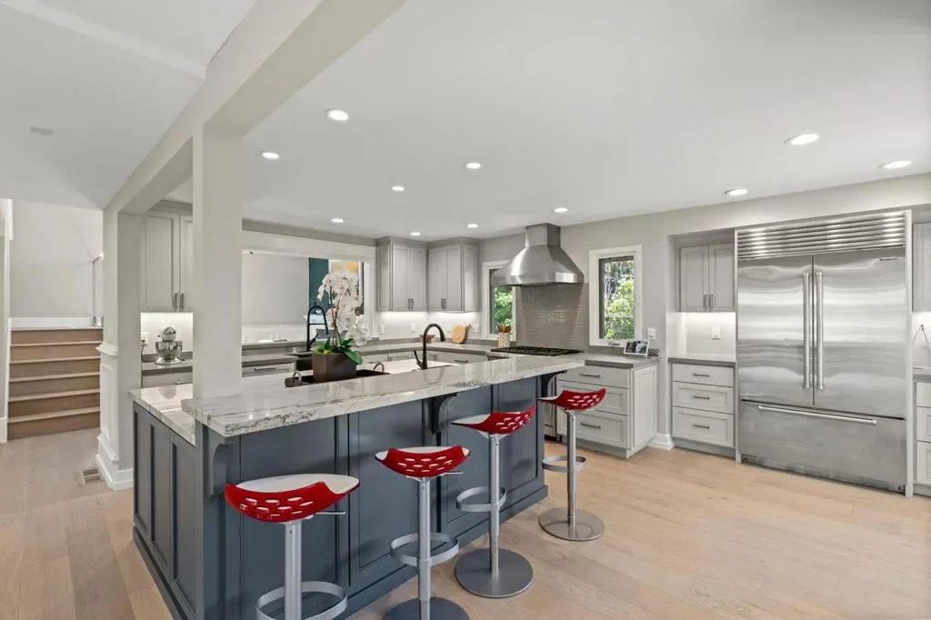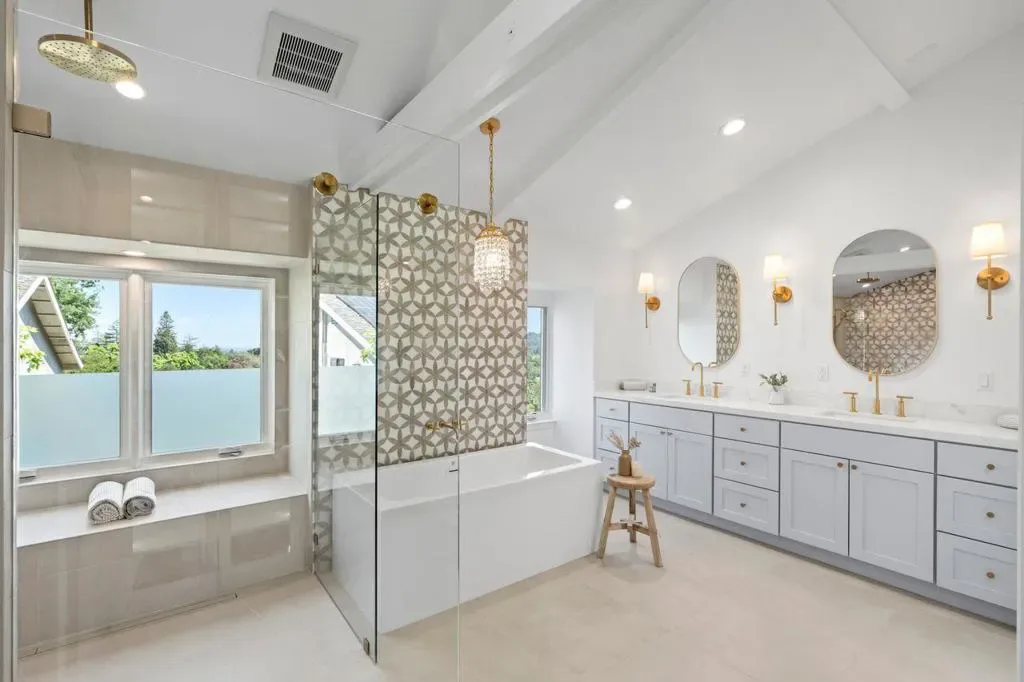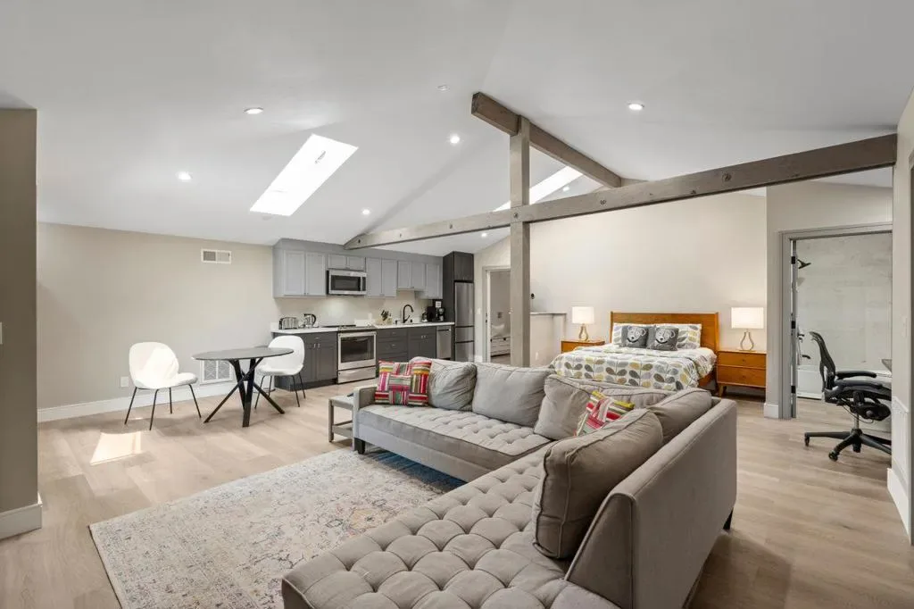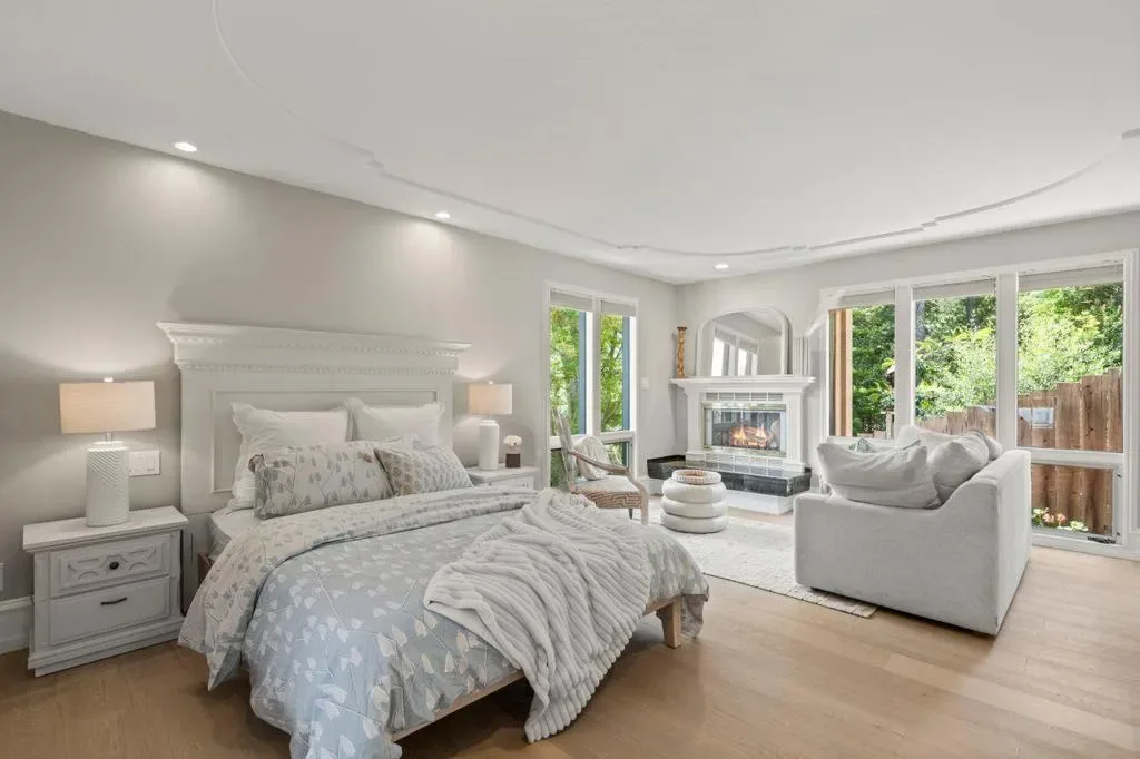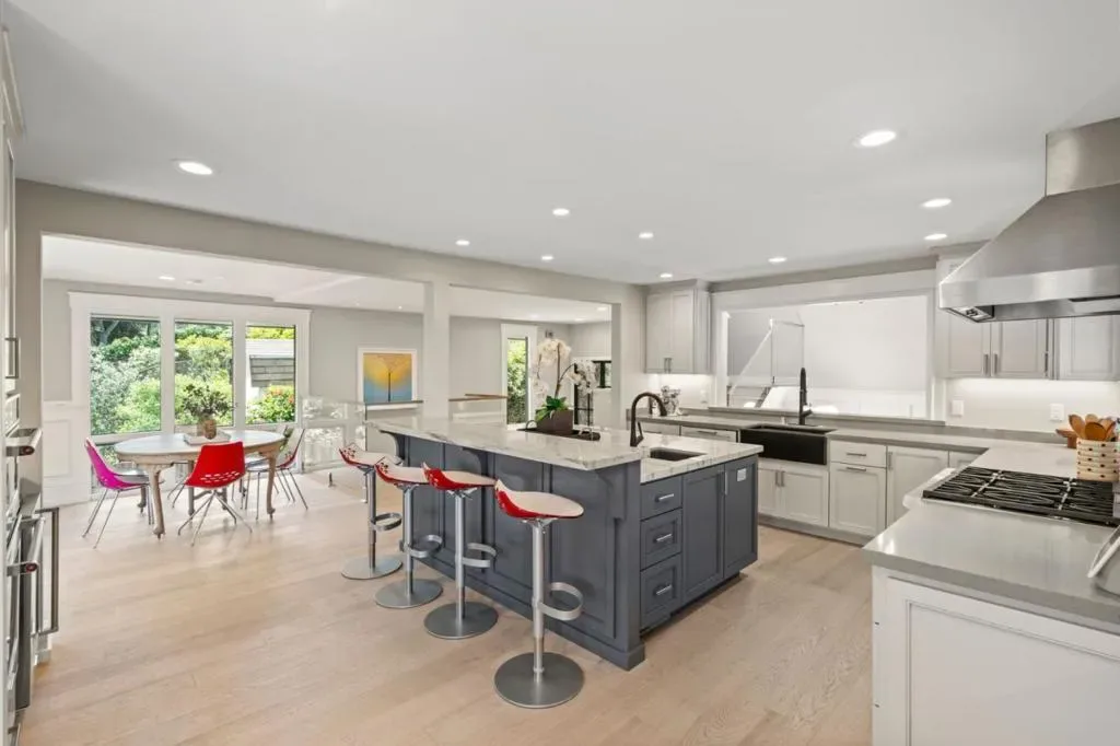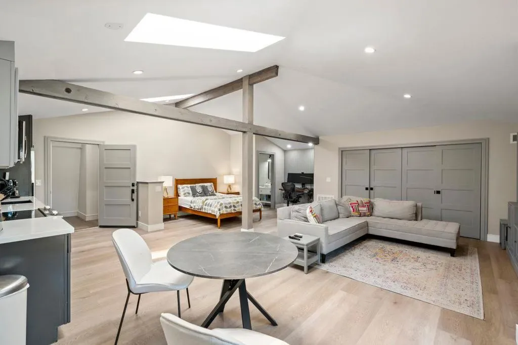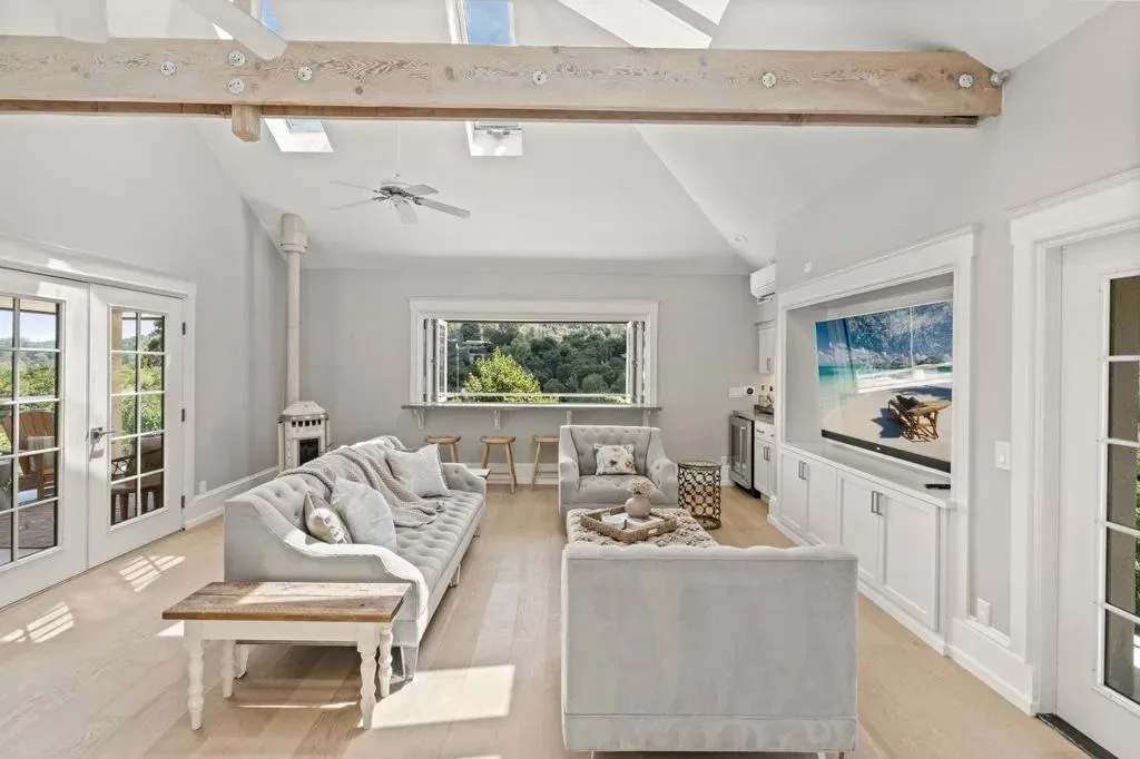 Timeless design meets modern luxury in this newly renovated residence offering approx. 4,608 sq ft, including a detached 800 sq ft ADU. Light-filled interiors showcase dramatic windows, soaring ceilings, and curated finishes throughout, creating a sophisticated yet inviting atmosphere. The chefs kitchen features Wolf and Sub-Zero appliances and opens to multiple living and dining areas designed for both everyday living and entertaining. Expansive terraces and outdoor spaces capture mountain and city light views, seamlessly extending the living experience. The primary suite occupies its own level with a spa-inspired bath, dual shower, custom cabinetry, and private office. The lower level includes an additional suite with fireplace and private deck, plus two bedrooms, two baths, and a separate study. A garden level with lawn, outdoor kitchen, and private cinema adds to the homes versatility. The newly built ADU above the oversized garage offers flexible living options. Ideally located near downtown Los Gatos and Testarossa Winery.
