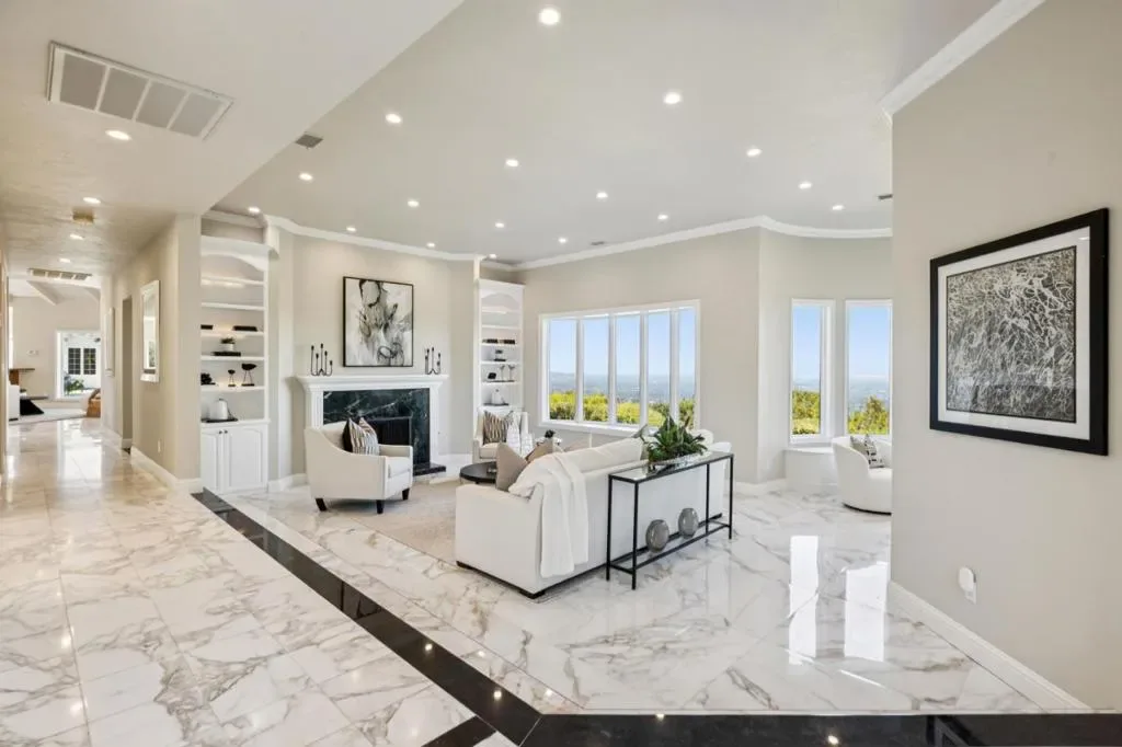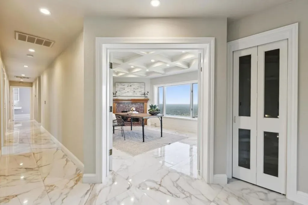 Set along one of Los Gatos most sought after ridge lines, this extraordinary estate captures sweeping yet intimate panoramas. Nearly every window frames views across downtown Los Gatos, Vasona Lake, the surrounding mountain ridges, and even the distant skylines of San Francisco, Oakland, and San Jose. Wrapped in privacy and framed by elegant landscaping, this breathtaking residence combines grandeur, comfort, and a deep connection to its natural setting. A tall wrought-iron entry door accented by mosaic glass opens to a grand foyer with volume ceilings and an elegant chandelier. Dual staircases sweep upward, creating balance and presence, while large windows allow natural light to pour in. Radiant heated marble and tile floors flow throughout the property for year-round comfort. The home unfolds with thoughtful flow and scale. With an expansive primary suite, four guest bedrooms, executive office, attached ADU with full kitchen and bath, detached pool house and two finished three-car garages, this estate is a home of scale, refinement, and enduring presence. With panoramic views dusk to dawn, an elegant design and resort-style amenities, it offers a true Los Gatos estate experience private, expansive, memorable, and a wonderful place to call home.