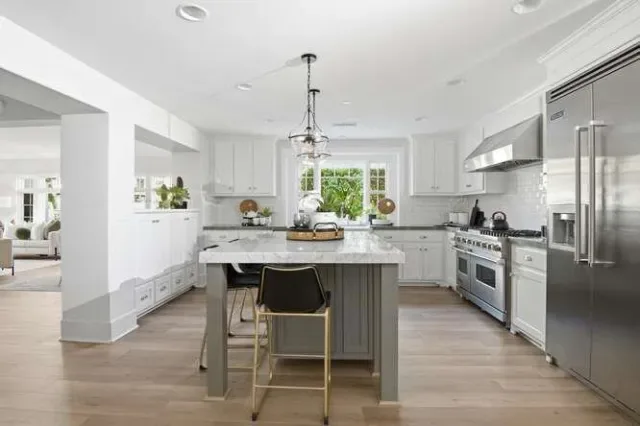 Sophisticated Tudor in the desirable Laurel Mews community just minutes from vibrant downtown Los Gatos. This former model home by award-winning Robson Homes showcases quality craftsmanship and thoughtful upgrades throughout. Freshly updated with new flooring and paint, the home offers bright, elegant living spaces. The gourmet kitchen features a stainless steel Viking 6-burner range with grill and double ovens, Viking built-in refrigerator, abundant soft-close cabinetry, and a large marble island ideal for casual dining and entertaining. Light-filled living and family rooms open to a private backyard perfect for relaxing or outdoor gatherings. A versatile lower level with full bath and wet bar offers potential for guest or extended living. Luxurious primary suite plus well-appointed secondary bedrooms. Close to top schools, shopping, dining, parks, and convenient freeway access. This home is beautiful and ready for a fun filled new owner!