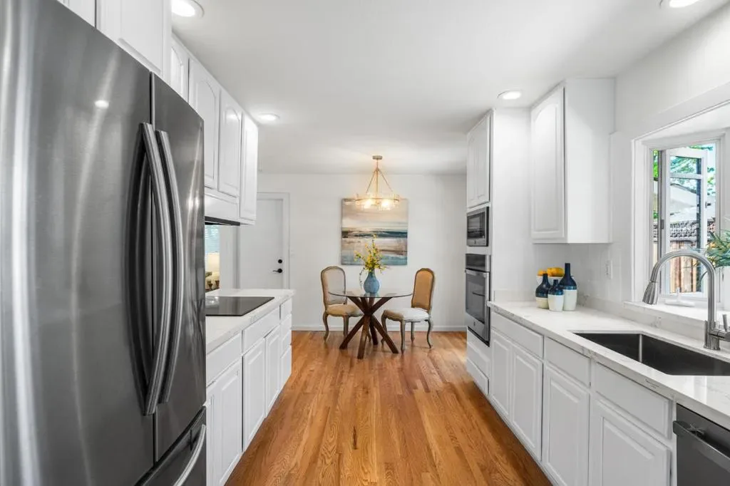 Experience the quiet sophistication of this beautifully refreshed 4-bedroom, 2-bathroom ranch home in the coveted Belwood neighborhood of Los Gatos. Enter the bright entry where an oversized skylight pours ample natural light across the polished interior. Every detail is elevated, from the refinished hardwood floors, fresh designer paint, updated windows and interior doors, plus a NEW composition roof. The kitchen serves as a refined centerpiece, featuring quartz countertops and stainless appliances. Set on a generous 10,000+ square foot lot, the homes standout feature is the classic brick front porch offering stunning hillside views. The private backyard features an expansive deck designed for seamless entertaining. Enjoy access to top-rated schools, including Leigh High School, and a prime location moments from Belgatos Park, the community pool, Lele Cakes café, and easy freeway access. This home combines top-quality updates with a premier Los Gatos lifestyle.