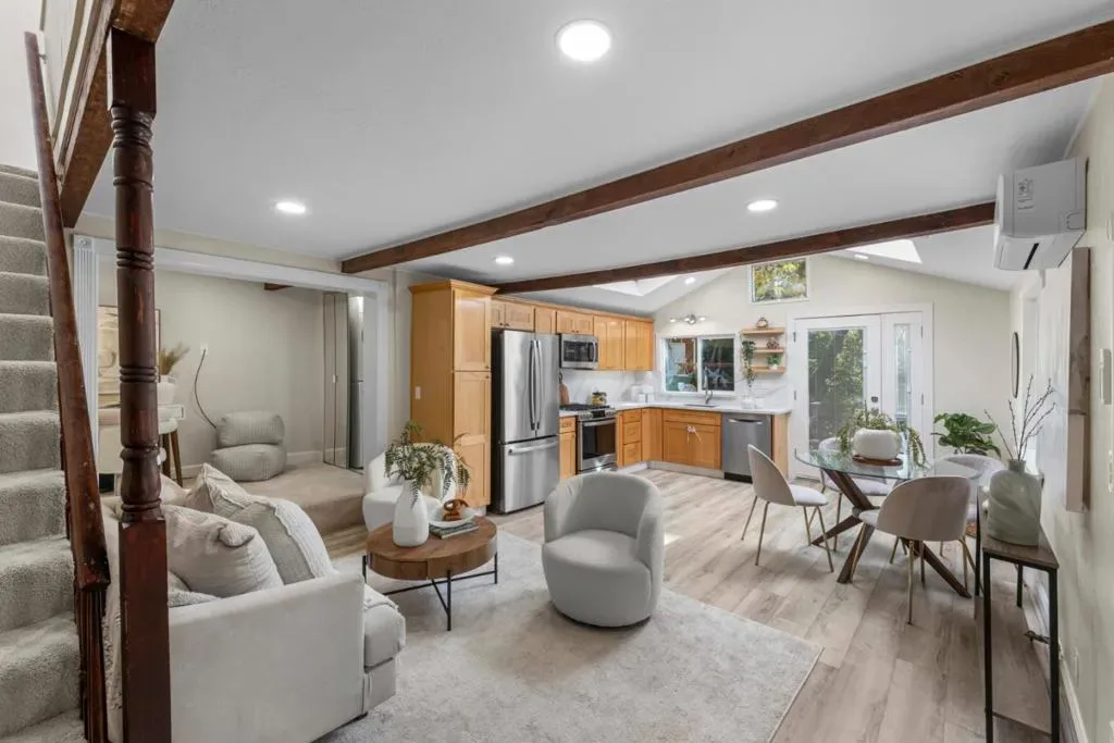 A rare mountain gem offering two private living retreats in the heart of Los Gatos. Escape to refined mountain living in this peaceful home tucked within the scenic Lake Canyon community. Surrounded by nature, sun-filled interiors, vaulted ceilings, and a bay window frame tranquil canyon views, while expansive decks overlook a gentle creek, perfect for morning coffee, quiet evenings, or effortless entertaining. The primary bedroom offers a private entrance, built-in closet, and abundant natural light, and a flexible bonus space works well as a home office or reading lounge. The attached lower-level ADU features its own living area, kitchen, bedroom, full bath, and separate entrance, providing comfortable independent living for extended family, guests, or rental income. The property has previously generated approximately $4,500 per month when both living areas were utilized, offering the opportunity to live in one and offset expenses with the other. Enjoy the meditation garden and labyrinth beside the creek, all just minutes from downtown Los Gatos, top-rated schools, and convenient commute access via Highway 17. A rare blend of privacy, nature, and everyday convenience.