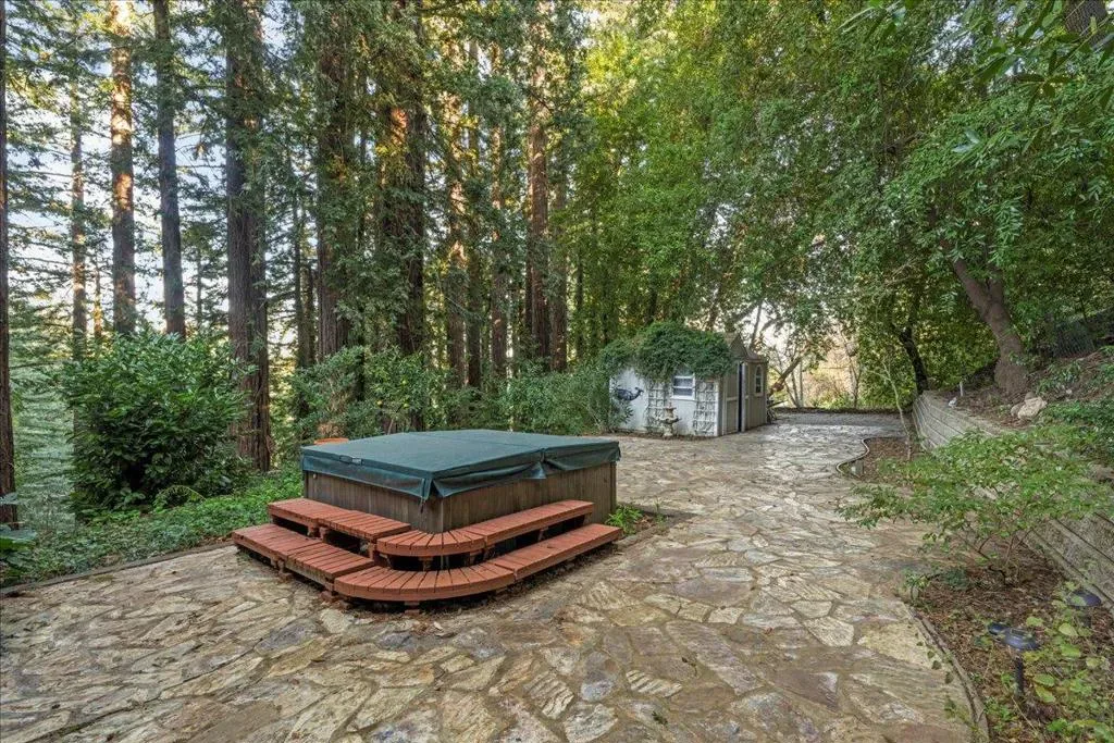 Ideally located in the Los Gatos mountains just minutes from downtown, this home offers room to relax, work, and play, with easy access to parks and scenic trails. The kitchen includes a dedicated breakfast room and opens to a spacious living room anchored by a cozy wood stove and framed by views of the surrounding outdoor space. The upper level features two inviting bedrooms and a full bath. The lower level provides added flexibility with a family room, game room, full bath, two more bedrooms, laundry, and abundant storage. Outside, a hardscaped patio offers the perfect setting for gatherings or quiet evenings. Served by award-winning Los Gatos schools.