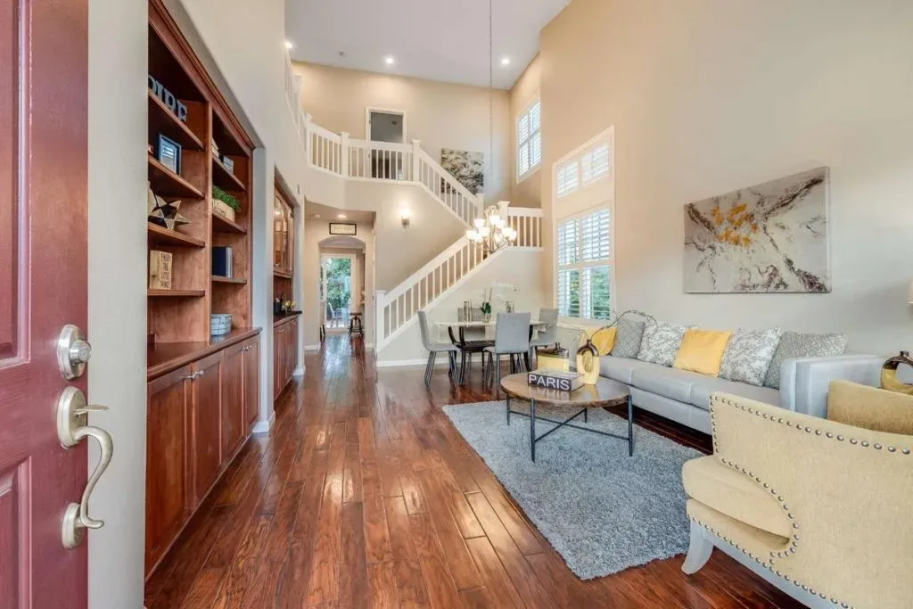 Surround your family with caring neighbors on a cul-de-sac where children can safely play. Move-in ready newer 4-bedroom, 2.5-bathroom home offering approximately 2,100 square feet of comfortable living in Los Gatos. Built in 2006, this residence blends timeless style with modern convenience. Soaring vaulted ceilings highlight the living and dining rooms upon entry, while an elegant staircase creates an inviting first impression. The family room flows seamlessly into the kitchen and backyard, ideal for everyday living and entertaining. Kitchen features newer cabinetry, granite countertops, limestone backsplash, and stainless steel appliances. Hardwood floors span the main level, with plush carpet upstairs. Lot offers a private backyard with pavers and a fire pitperfect for gatherings. Located steps from Los Gatos Creek Trail with easy access to The Pruneyard, Downtown Los Gatos, Vasona Lake and more! Quick drive to Netflix, Roku, Highways 85 and 17, and Good Samaritan Hospital. Excellent schools include Farnham, Price Middle, and Leigh or Branham High. Don’t miss this rare opportunity to be a part of this community!