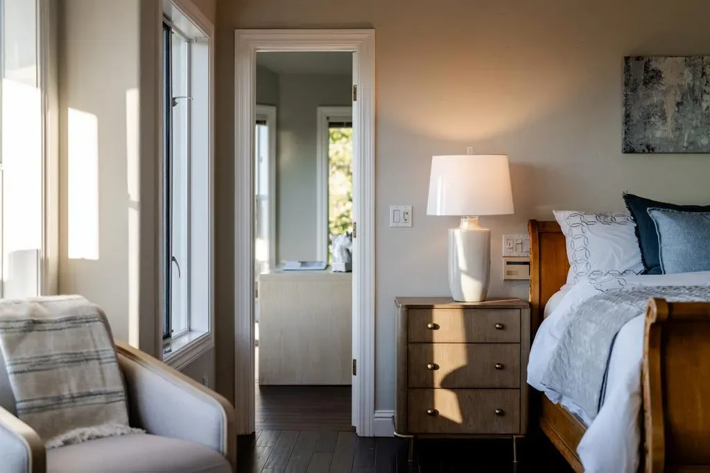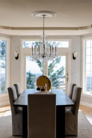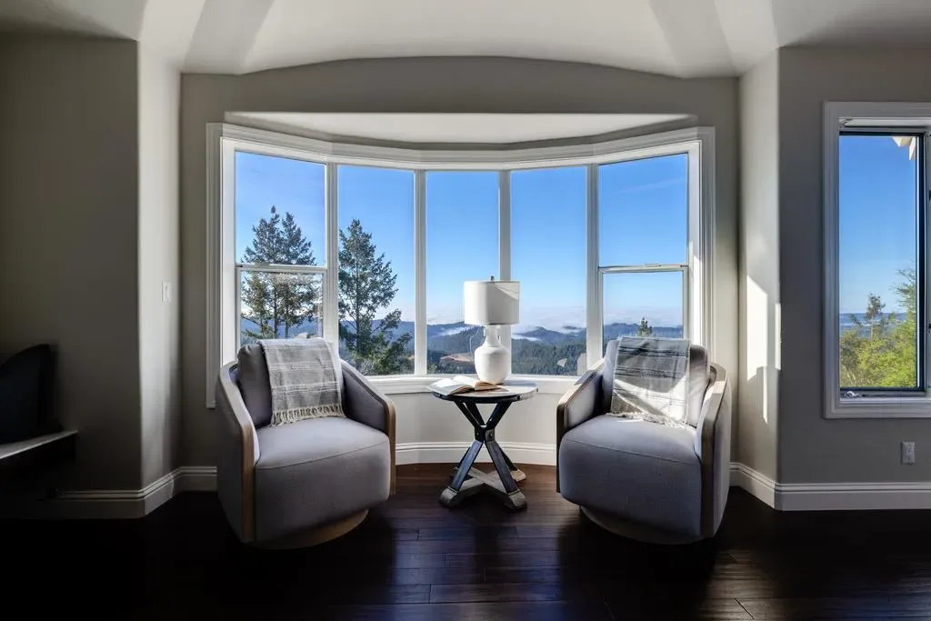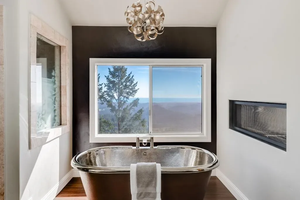 Let’s just get this out of the way, the view here is ridiculous. The kind that interrupts conversations. Someones halfway through a sentence, glances out the window & suddenly the whole room goes quiet for a second. Some days its crystal clear across the valley. Other days clouds drift through the mountains. At night, the lights below start to sparkle. The main living spaces were clearly designed around it. The kitchen & family room sit in the center of the home & naturally become the gathering spot. Someones cooking, someones leaning on the counter, & before long everyone has drifted toward the windows again. Outside, two large connected decks make entertaining easy & the hot tub tends to become the evening destination once the valley lights come on. A garden path leads past raised beds to a small vineyard, giving the property its own little slice of Napa, just with ocean views. The primary suite is grand & positioned perfectly toward the valley & ocean beyond, complete with a see-through fireplace & a copper soaking tub that tends to turn five minutes into an hour. There’s also an office with the same outlook, which means you’ll never need a generic Zoom background again. Space, privacy, fresh air & a setting that somehow manages to steal the show every single time.