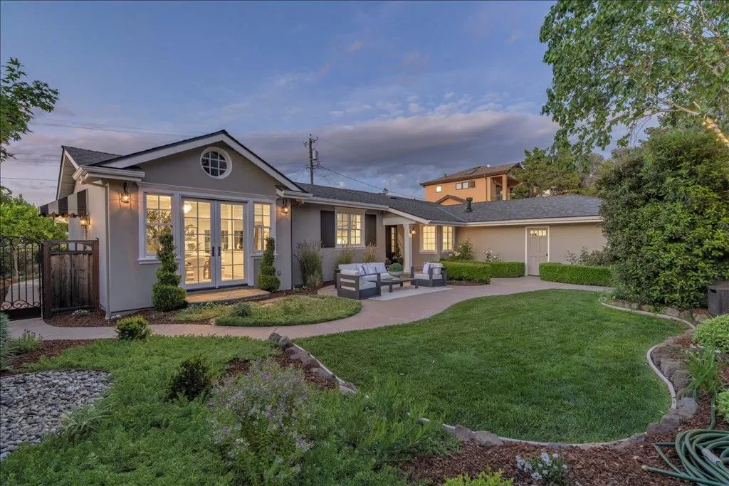 Rare single-level luxury in prime Los Gatos! Beautifully upgraded 4BD/2.5BA home offering 2,577 sq.ft., 502 sq.ft. attached 2-car garage with new epoxy finish, a private 10,000 sq.ft. lot in highly sought-after location near downtown, top schools, and premier shopping. Extensively renovated in 2026: new roof, interior/exterior paint, updated plumbing (~60 ft), new water heater, one new sump pump, new lighting and foundation vent covers. Fresh landscaping with new flowers, mulch, and upgraded irrigation system. Interior features new carpeting and a new French door in the primary suite. Elegant living spaces showcase hardwood floors, crown molding, and a formal living room with vaulted beam ceilings and fireplace. Chef’s kitchen with quartz island, farmhouse sink, Wolf 6-burner range, Sub-Zero fridge, Bosch dishwasher, and custom cabinetry. Luxurious primary suite with backyard access, walk-in closet, and spa bath with jetted tub, rainfall shower, and skylight.Private backyard with lush lawn, mature trees, pergola-covered hot tub, and flagstone patio.Features include A/C, Nest thermostat, skylights, water softener & security alarm.Near top schools, Blossom Hill Elementary, stroll to Hillbrook school, Whole Foods, Trader Joes, Lunardis, the Los Gatos creek trail & downtown Los Gatos