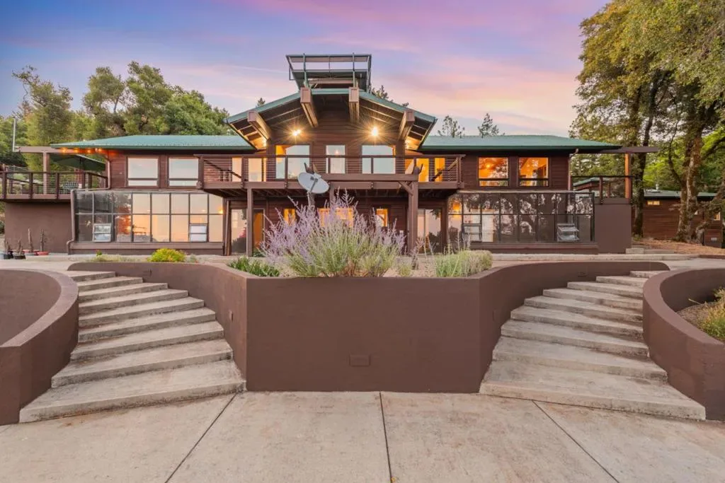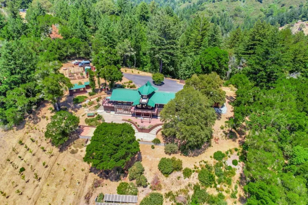 Private ridge-top sanctuary just minutes from downtown Los Gatos. Set on approximately 21.6 sun-drenched acres, this exceptional estate offers remarkable privacy, sweeping valley and mountain views, and the perfect balance of peaceful retreat living with convenient Silicon Valley access. The 3,083± sq ft main residence features vaulted ceilings, expansive windows, and a light-filled open floor plan designed to capture breathtaking vistas. A spacious dedicated office provides an ideal work-from-home setting. Generous living areas flow seamlessly to expansive view decks, perfect for entertaining or enjoying spectacular sunsets. A detached guest house/ADU adds flexibility for extended family, guests, a studio, or potential rental income. The usable acreage includes private trails, orchard and garden areas, and multiple outdoor spaces. Equipped with owned solar, backup power, and private well, this property blends self-sufficiency with modern comfort. A rare opportunity to own a private Los Gatos mountain estate with space, views, and versatility. For open houses, please find the gate code posted by the keypad. For by-appointment showings, please text listing agent to receive the private gate code.