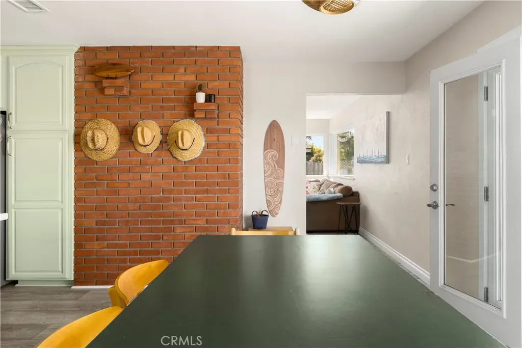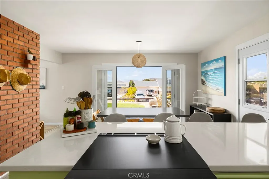 The interior is defined by an open, airy atmosphere and thoughtful modern updates. A cozy, central gathering space featuring large windows and a traditional wood-burning fireplace. Fully updated for modern needs, including a functional breakfast bar and a pass-through window that opens directly to the exterior grilling station—perfect for effortless serving. The home is designed to flow naturally to the outdoors via elegant French doors, doubling your living space. Two full bathrooms have been completely renovated with contemporary finishes. Peace of mind is built-in with a new hot water heater.