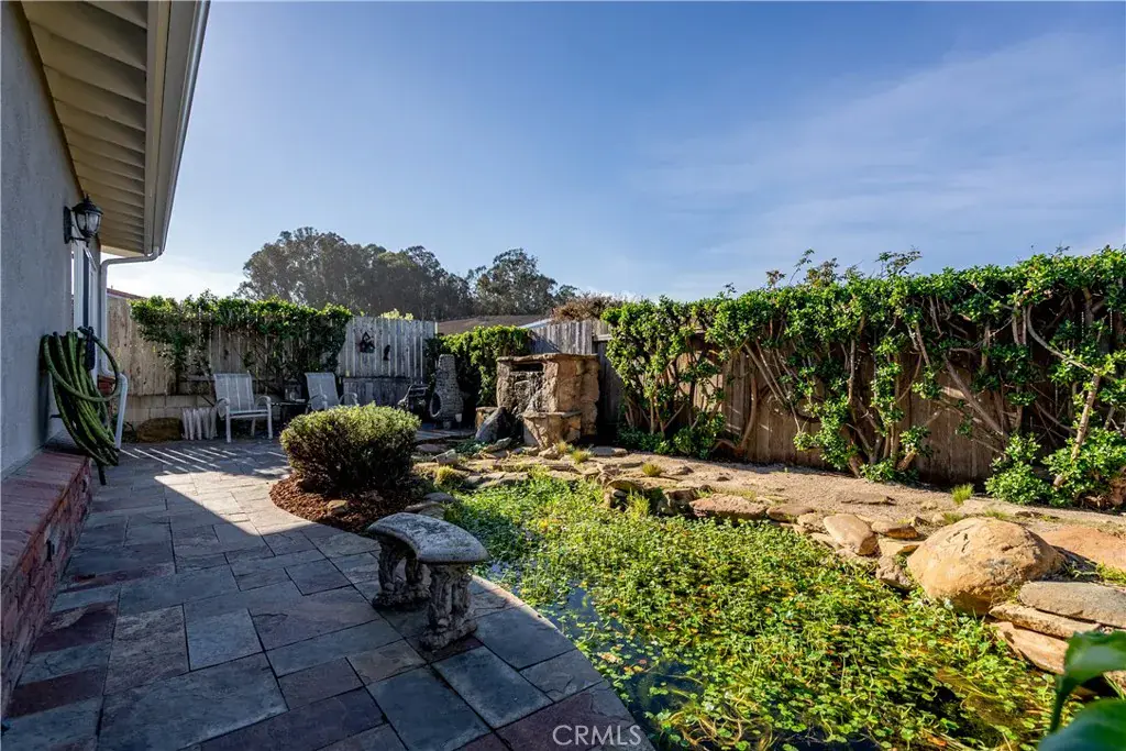 Nestled in the highly sought-after Monarch Grove neighborhood of Los Osos, this beautifully updated 3-bedroom, 2-bathroom home offers an expansive layout larger than many surrounding properties. Thoughtfully designed and many custom tasteful upgrades, the home features high-end flooring throughout, a stylishly custom kitchen, newer efficient fireplace and elegant detailed wall finishes, built-in cabinets and graceful arched hallways. The spacious primary suite is a true retreat, highlighted by a large expanded oversized bedroom, two closets and one oversized walk-in closet, and a luxurious bathroom complete with a relaxing soaking bathtub. Every detail has been curated to create a comfortable yet refined living experience. Step outside to discover a serene backyard oasis with peek-a-boo views of the bay and iconic Morro Rock, unwind beside the two waterfalls and the tranquil koi pond, and take in the beauty of mature trees and lush, established landscaping. This private outdoor space with expansive tiled hardscape is ideal for relaxation, entertaining, or simply soaking in the peaceful coastal atmosphere, morning coffee and or evening entertainment with friends and family. Warm, inviting, and perfectly situated, this exceptional home captures the essence of Los Osos living and peace of mind with a recent roof replacement and termite repairs.