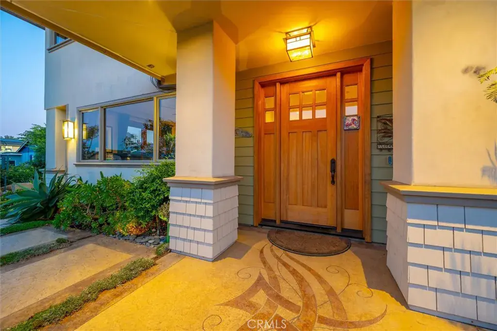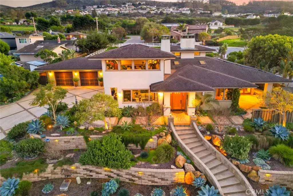 Welcome to 295 Mar Vista, a modern Craftsman offering four bedrooms and four full baths on an oversized corner lot with desirable northern and westerly exposure. Ocean breezes and layered privacy define the arrival, with custom paver walkways, concrete patios, sculpted garden walls, and an oversized stamped driveway leading to a three-car garage with wood-grain doors. Professionally designed grounds feature stone walls with integrated lighting and a fully water-efficient landscape with smart irrigation.