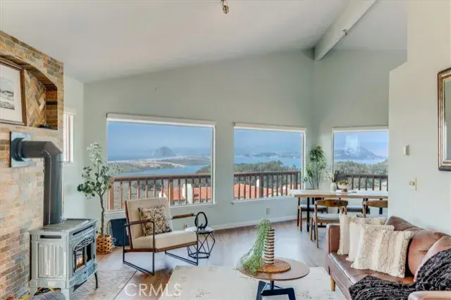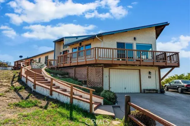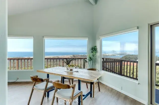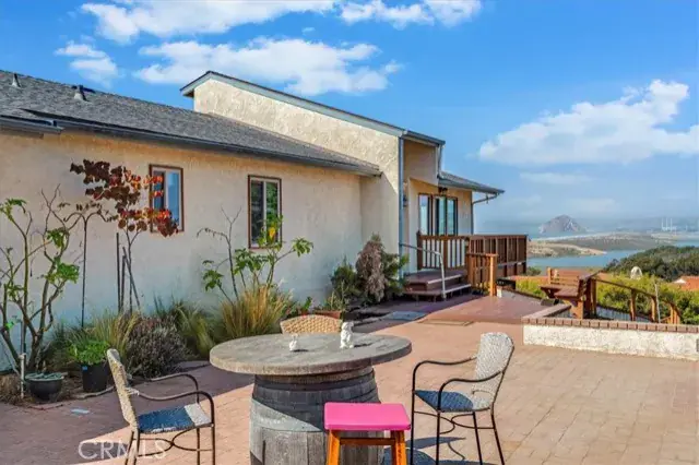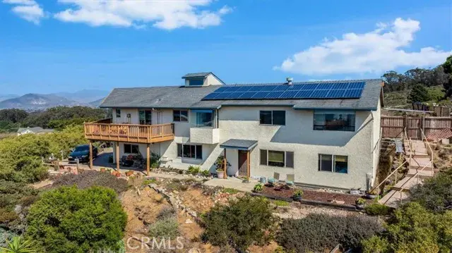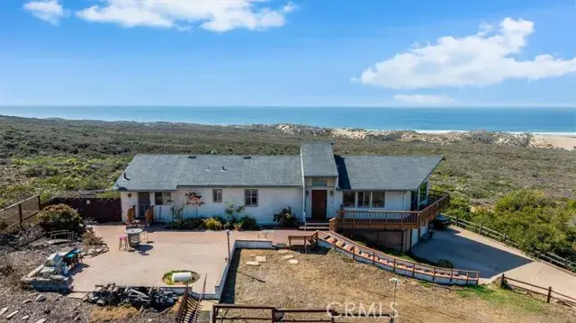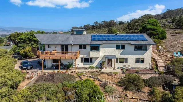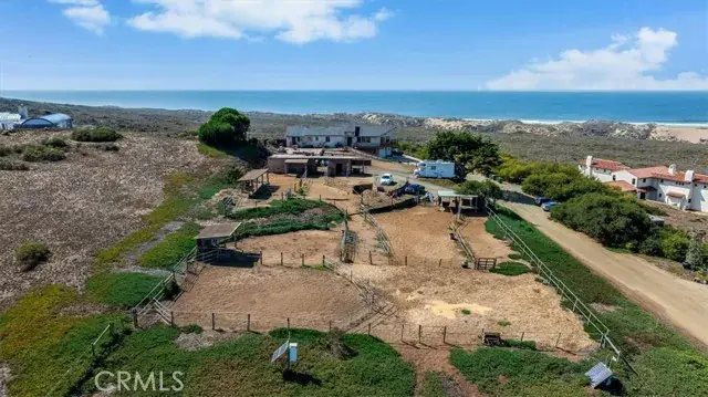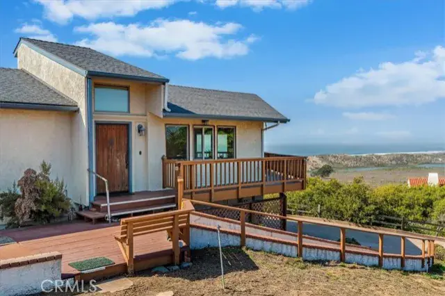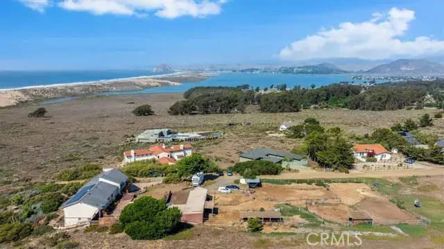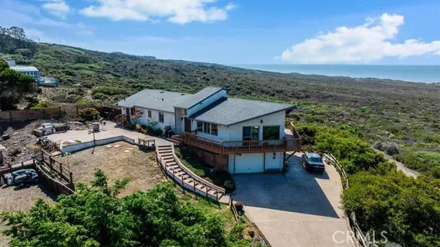 Perched above the coastline beside Montana de Oro State Park, this idyllic piece of paradise offers sweeping 270-degree views of the Pacific Ocean, Morro Rock, and the back bay, all framed by hundreds of acres of preserved natural land. Wildlife abounds here, from migrating whales and soaring birds to coyotes and more, creating a rare connection to nature in every direction. From its hillside perch, the home enjoys ever-changing views within an unchangeable vista—one of the Central Coast’s most treasured panoramas. Golden light washes the landscape by day, while celebrated daily sunsets paint the horizon with unforgettable color, ensuring that no two evenings are ever alike. The nearly two-acre coastal ranchette is an equestrian’s delight, featuring onsite horse facilities and direct access to endless outdoor adventures. Ride for miles along deserted sandy beaches and explore the extensive trails that wind through the park’s breathtaking coastal bluffs, dunes, and rolling hills—all just beyond your fenceline. The rustic yet spacious home is designed for versatility, ideal for sharing or multi-generational living with separate entrances to two private guest suites on the lower level. Inside, high vaulted ceilings and expansive picture windows bring the outdoors in, while custom details showcase unique craftsmanship—stone countertops with embedded quartz, hand-painted ceramic knobs, and cabinetry crafted by a master boat builder. Enjoy a glass-walled soaking tub with ocean views, a large dream workshop for creative projects, the convenience of owned solar, and the enhanced safety of two fire hydrants. Strong bones and timeless charm make this home easy to reimagine while offering endless possibilities. A rare blend of coastal beauty, small-town character, and outdoor adventure—Costa Azul Ranch is a once-in-a-lifetime find.