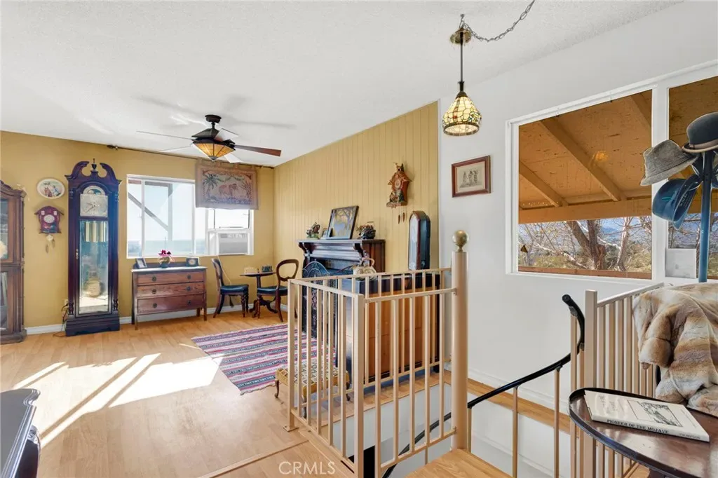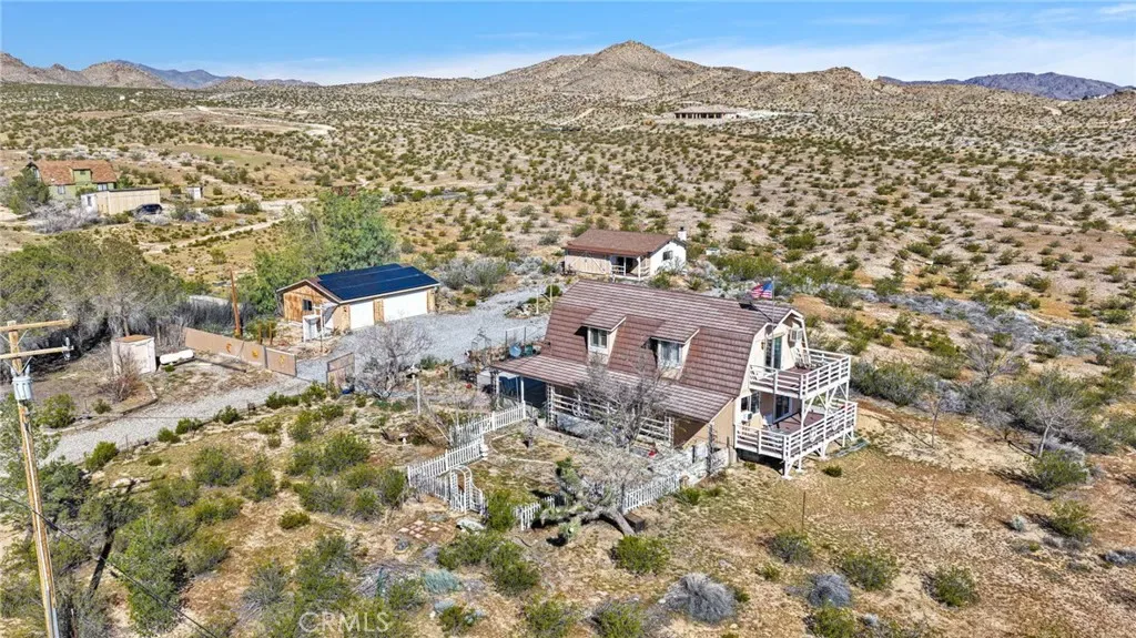 This property has two homes on 5 acres with a three-car detached garage. Offering stunning desert views and incredible flexibility for multi-generational living, rental income, or a peaceful private retreat. The main residence is a spacious three-story home offering approximately 3,024 square feet with a fully finished basement. The home includes 4 bedrooms, 2 bathrooms, a bonus room, a living room, and a family room, creating a flexible layout for a variety of living arrangements. The main level features a full bathroom, laundry room, and a handicap-accessible ramp for added accessibility and convenience. Downstairs, the finished basement offers additional character with a built-in china and wine cabinet and a Hammond organ. The versatile floor plan allows the lower-level room to function as a primary bedroom, formal dining room, entertainment space, or potential rental area, depending on your needs. The home is topped with a durable Alcoa aluminum shingle roof designed for lifetime performance and styled to resemble tile. Outdoor living spaces include two covered decks and one open deck, perfect for enjoying the peaceful surroundings and breathtaking desert views. The property also features a separate 760-square-foot single-story guest home built in 2000. This charming second residence includes 1 bedroom, 1 bathroom, a family room, a breakfast nook, and a full kitchen. The home features a cozy wood-burning stove, is wired for cable and WiFi, and includes an interior sprinkler system for added safety. The guest home can come fully furnished if desired. The property includes a solar energy system with 25 panels wired to the main house with a very low monthly lease of $141, which is assumable.