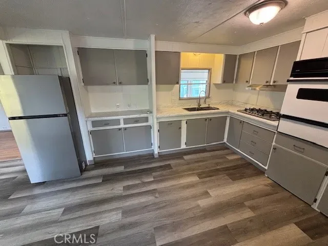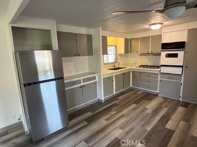 The upgraded kitchen includes a new stainless steel refrigerator, stovetop, hood, sink, and updated flooring. The bathroom has been refreshed with a new tub/shower combo, new vanity, and new flooring for a clean, modern look.
