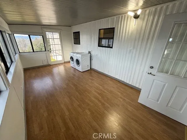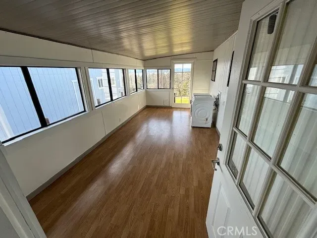 A bright bonus room with new flooring offers relaxing lake views and includes a convenient laundry area. Step outside to enjoy the fresh air and more views from your second entry deck for added convenience and outdoor living options.