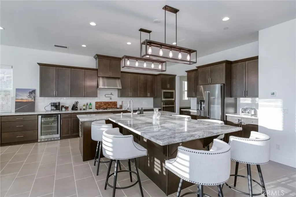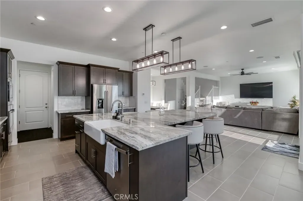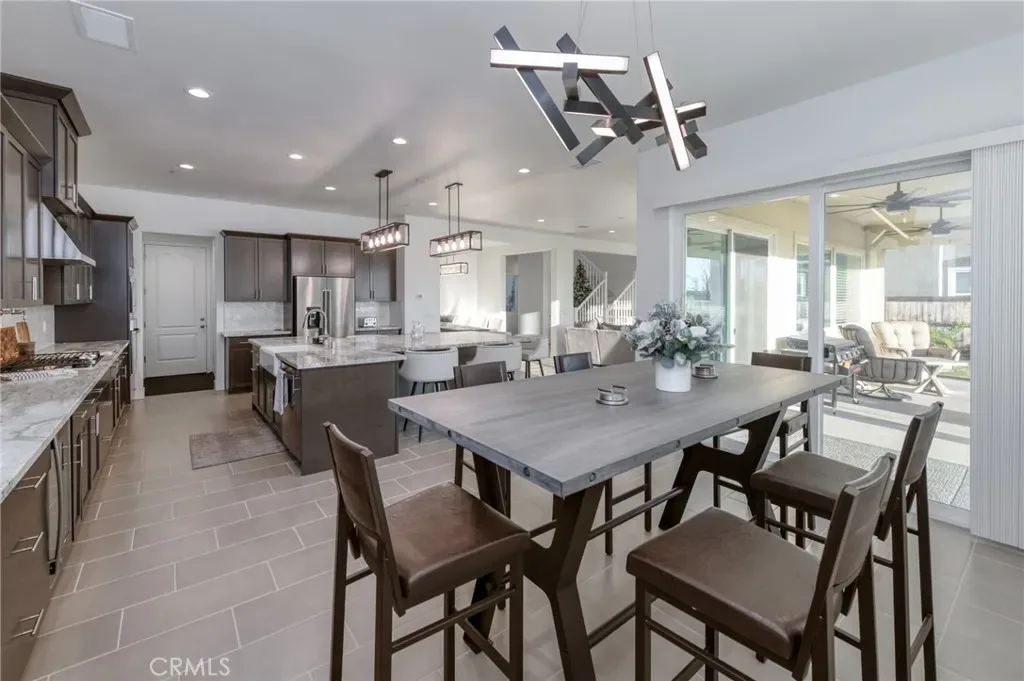 Stunning McCaffrey Thomas model home built in 2024, offering 3,880 sq ft of thoughtfully designed living space. This beautifully crafted home features 4 spacious bedrooms, 3.5 bathrooms, plus a dedicated office, ideal for today’s work-from-home lifestyle. The heart of the home is the designer kitchen with an oversized island, extended cabinetry for ample storage, custom light fixtures, and seamless flow into the open living and dining areas, perfect for entertaining! This home is extremely well kept and showcases high-end finishes throughout. Additional highlights include owned solar, EV charging, a spacious 3-car garage and the rare opportunity to purchase fully furnished, making this truly move-in ready. Every detail reflects the quality and craftsmanship expected from a McCaffrey Thomas model home, sitting on a ~8000sqft lot with unbeatable sunset views. A must-see property that blends modern luxury, efficiency, and comfort while blending into the perfect family lifestyle that the Tesoro Viejo community is known to offer!