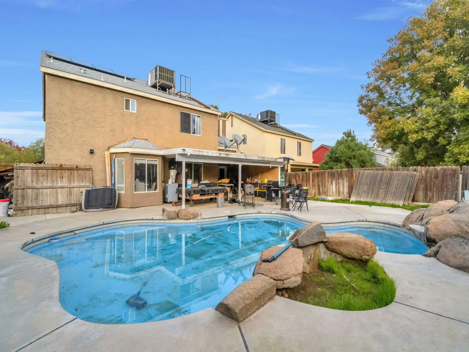 Enjoy outdoor living at its finest with a sparkling private pool and covered patio, perfect for hosting or relaxing in the California sunshine.