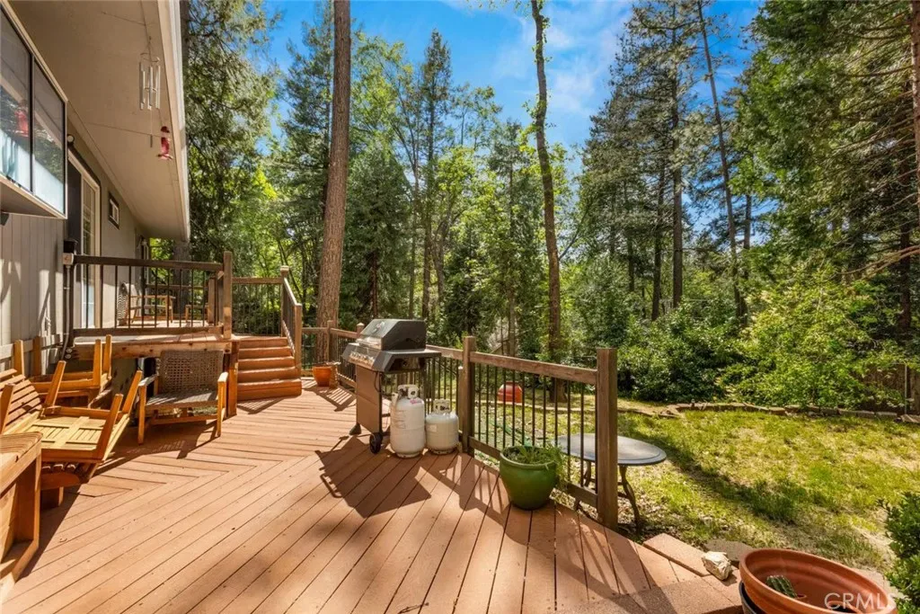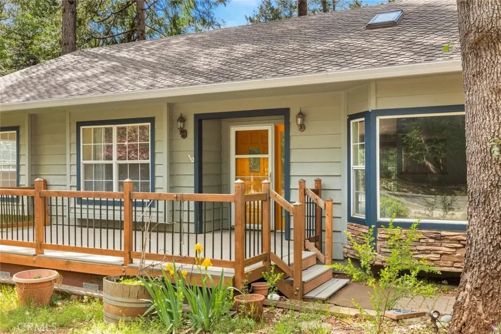 Turnkey living with thoughtful upgrades throughout! This well maintained 3-bedroom, 2-bath, 1,525 sq ft home welcomes you with soaring ceilings, abundant natural light, and a warm, inviting feel from the moment you step inside. The spacious living area is highlighted by a large bay window, cozy wood burning fireplace, and newer laminate flooring that flows seamlessly through the main living spaces, complemented by plush newer carpet in the bedrooms. Multiple skylights fill the home with natural light, creating a bright and airy atmosphere. The kitchen is both functional and stylish, featuring a newer refrigerator and dishwasher, a large pantry, and built-in cabinetry offering plenty of storage and organization. Just down the hall, you’ll find two comfortable guest bedrooms and a well-appointed guest bath with a tub/shower combo. The primary suite offers direct access to the backyard patio—perfect for morning coffee or quiet evenings outdoors. The ensuite bath features radiant heated floors, a spacious walk-in shower, dual sink vanity, and elegant crown moulding details. On the opposite side of the home, a generously sized laundry room provides added convenience with natural gas dryer hookups and abundant cabinet space. Step outside to enjoy the fully fenced backyard, designed for both relaxation and entertaining. The Evergreen composite deck patio offers a low-maintenance outdoor living space, while the raised garden bed and expansive yard provide endless possibilities for gardening, play, or gatherings. Additional upgrades add peace of mind and efficiency, include a newer HVAC system (2022), tankless water heater, water softener, generator-ready transfer switch, new garage door opener, and recent hazardous tree removal (2023/2024). Set in a sought-after POA community with year-round amenities, including a pool and billiards room, this home offers the perfect blend of mountain living, comfort, and charm! Book your showing today!