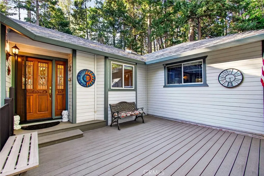 PEACEFUL FOREST VIEWS ABOUND ON THIS .44 ACRE HOMESITE! You are warmly welcomed by an expansive front porch with attractive metal railings and virtually no stairs to the front door from the concrete driveway, plus attractive landscaping and stone walk-ways into the yard. This 3-bedroom, 2-bathroom home offers a spacious open floor plan with vaulted ceilings, skylights, fresh & attractive interior paint and a free-standing gas fireplace on a tile hearth. The open kitchen features a daylight window above the stovetop, stainless steel appliances, granite transformation countertops with a large breakfast bar space for extra seating and ample storage & counter space and the view of the forest from the kitchen sink makes life more enjoyable. The adjacent dining room provides plenty of space and easy living access with a sliding glass door from the dining area to the new back deck for outdoor entertaining and enjoyment. These newer composite decks, both front and back, are made of weather-resistant materials and metal railings offering you years of low-maintenance enjoyment. The primary suite includes a double closet, soaking tub with scenic views, a walk-in shower as well as a sliding glass door to the deck overlooking the forest. A fully finished and versatile bonus room downstairs can serve as an office, hobby room, or guest space with its own external entrance and is not included in the home’s square footage. The attached two-car garage has a workbench, plenty of room for extra storage, and the laundry area. The owner has taken great pride in this home, and it shows! Updates include a new $15k heating & air unit, $55k in new composite decks front & back, fresh paint, newer flooring, and lots of landscape improvements. This home is a gem of a find so hurry before its gone!