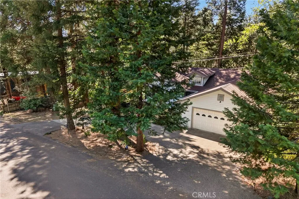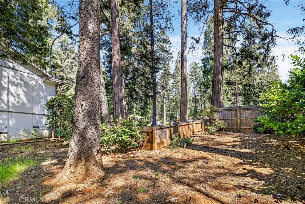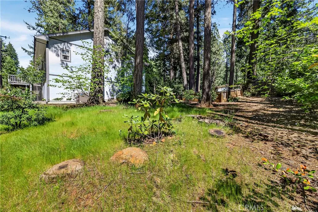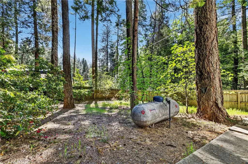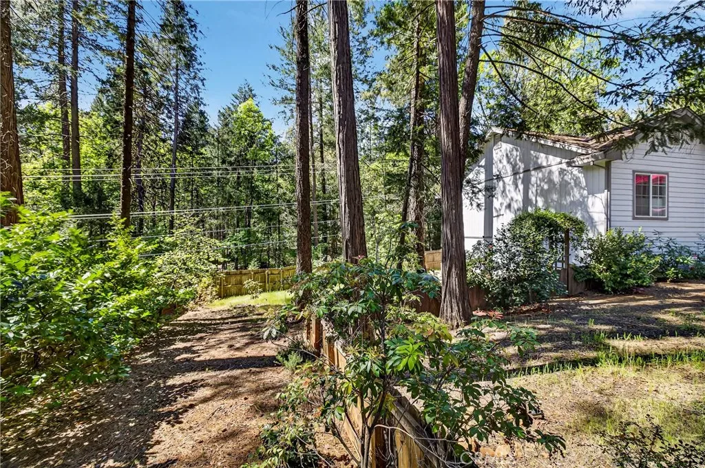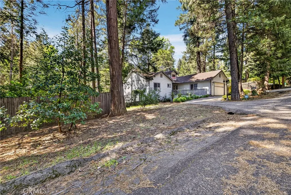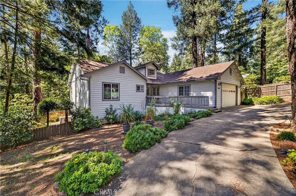 Nestled in the beautiful Magalia Pines is this One Owner Custom Built Home that is ready for a new owner. The owner had the plans drawn and completed the custom home in 2005. Wonderful curb appeal and a circle driveway welcomes you and your guests to the home. The home has an oversized 525 square foot 2-car garage. The composite front deck leads to a 9-foot covered front porch measuring 10X10 and accented with a knotty pine tongue and groove ceiling. The custom wood front door has a glass inlay. Upon entry you notice the open floor plan and the amazing 12-foot vaulted wood beam knotty pine ceiling and 9ft. ceilings throughout. The spacious living room has a custom gas fireplace with tile surround and beautiful wood mantle finishes the space. The large slider and windows open the views of the forest and the ever-changing forest views. The over 200 square foot deck is a fantastic place to entertain. The spacious kitchen has a 10-foot breakfast bar, travertine tiles counters, free standing propane oven/range, dishwasher, built in microwave, garden window and upgraded pull out drawers in the cabinets all overlooking the living room and dining room. Off the kitchen is a large laundry room with utility sink and large built in storage cabinets. Down the over 4-foot-wide hallway are two large built-in cabinets and the bedrooms and baths. The fantastic primary bedroom has great views of the forest through an 8-foot-wide picture window, and the primary bath offers 2 sink vanity with travertine tile counters, fully tiled shower with sliding glass doors and a huge walk-in closet. The guest bath offers a tub/shower combination with tiled walls, sliding glass doors and a tiled vanity with tile backsplash. Fully fenced side and backyard. Definitely enough room to develop boat, R.V. or trailer parking. The exterior of the home has cement style lap siding. The home is very warm and inviting and is ready for a new owner.