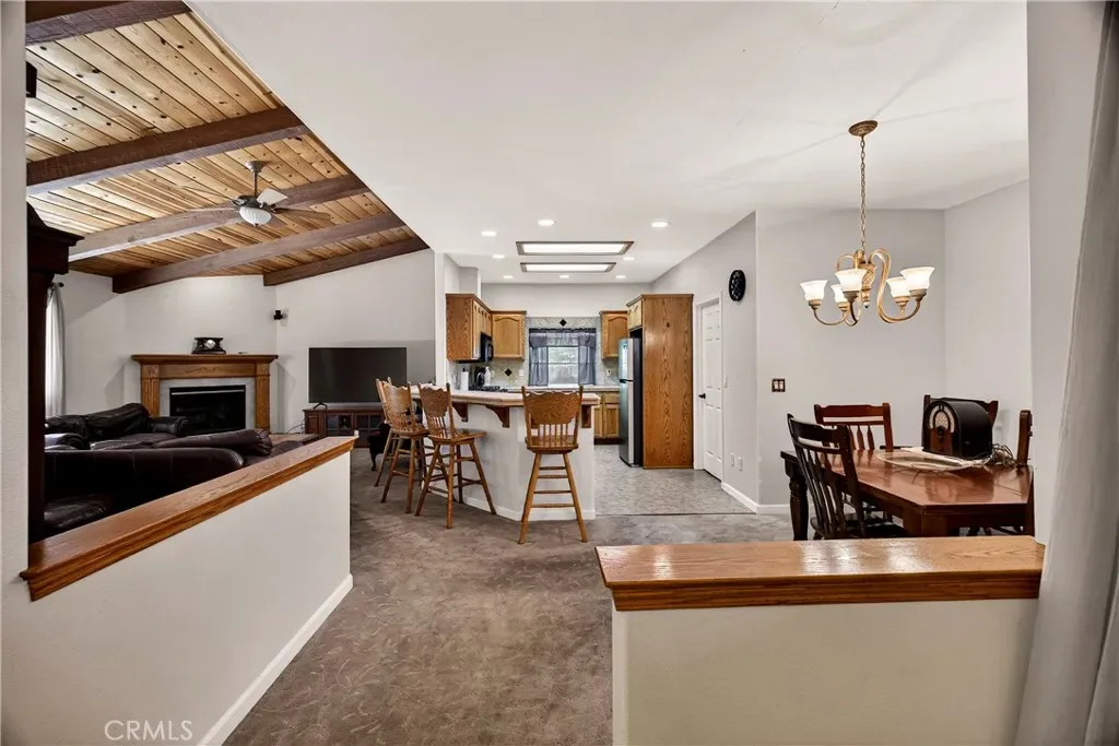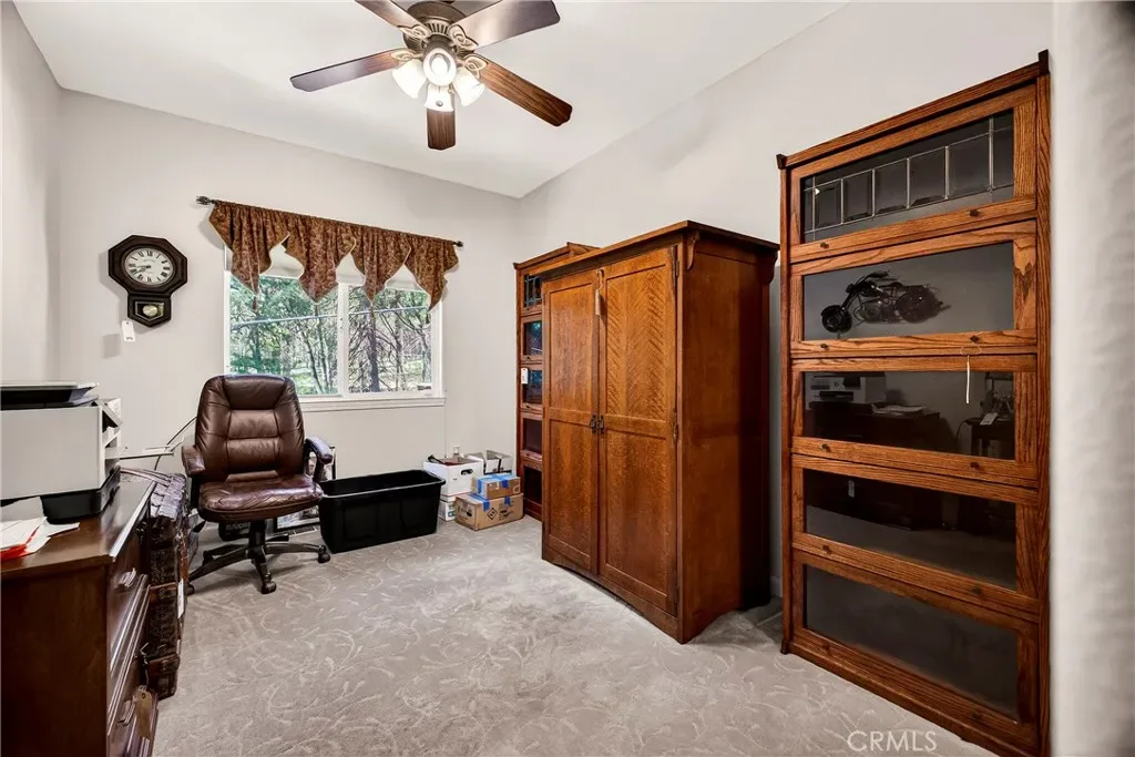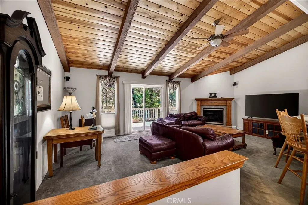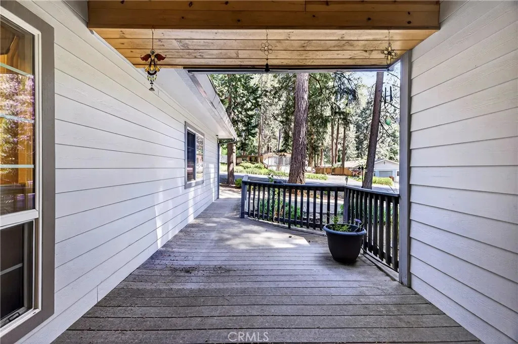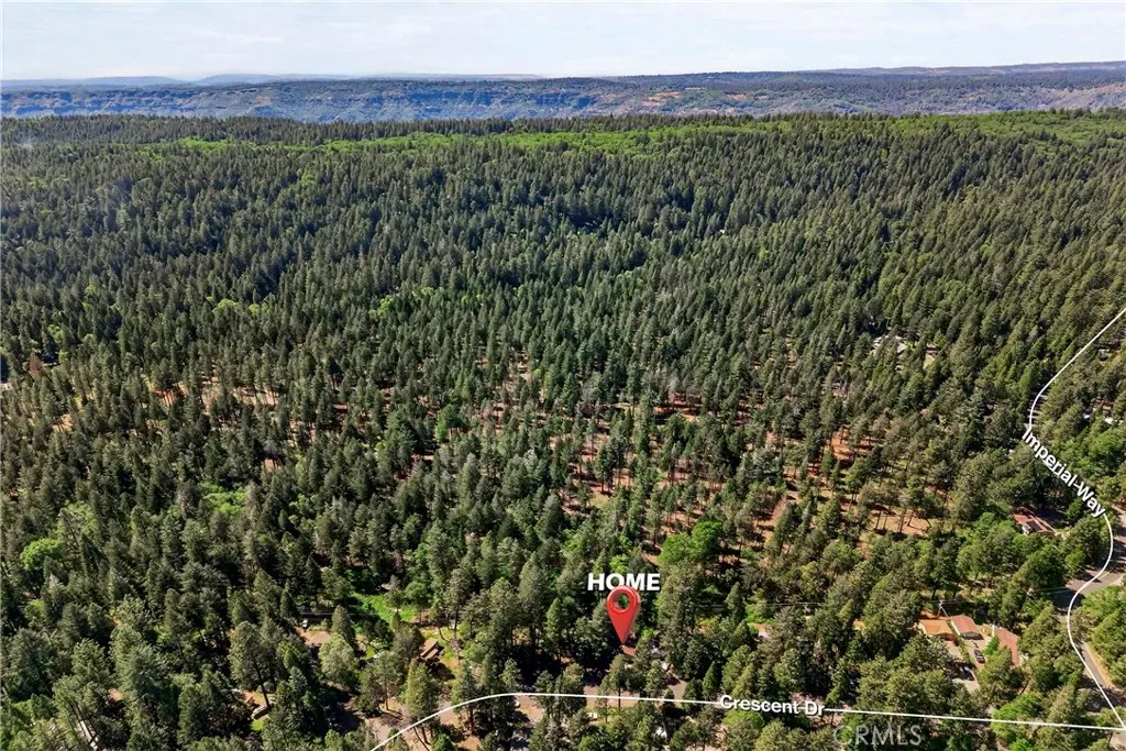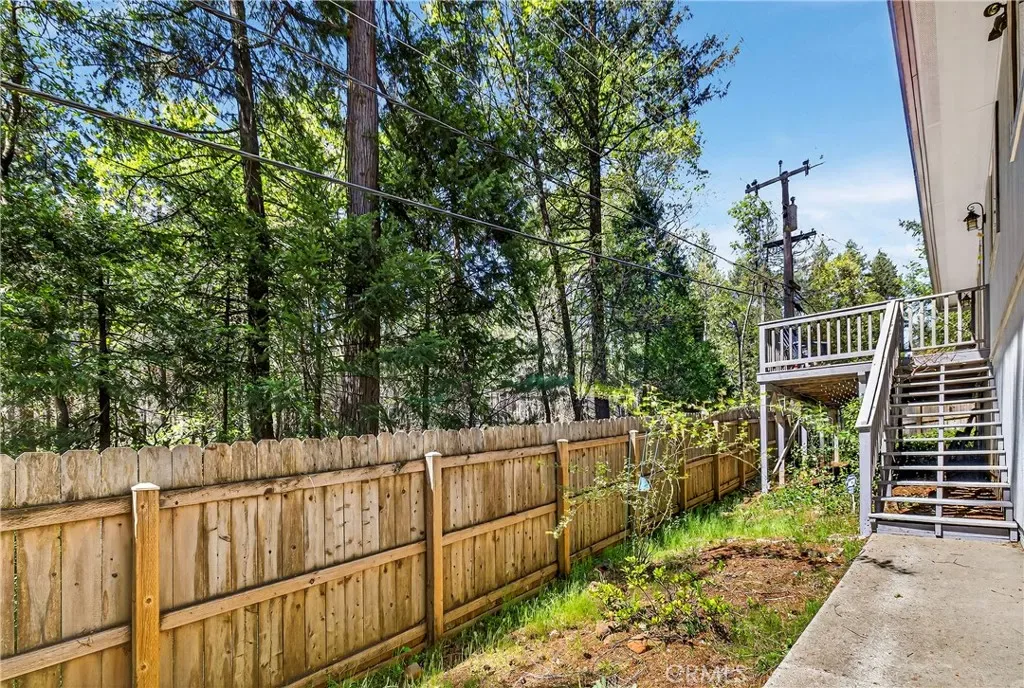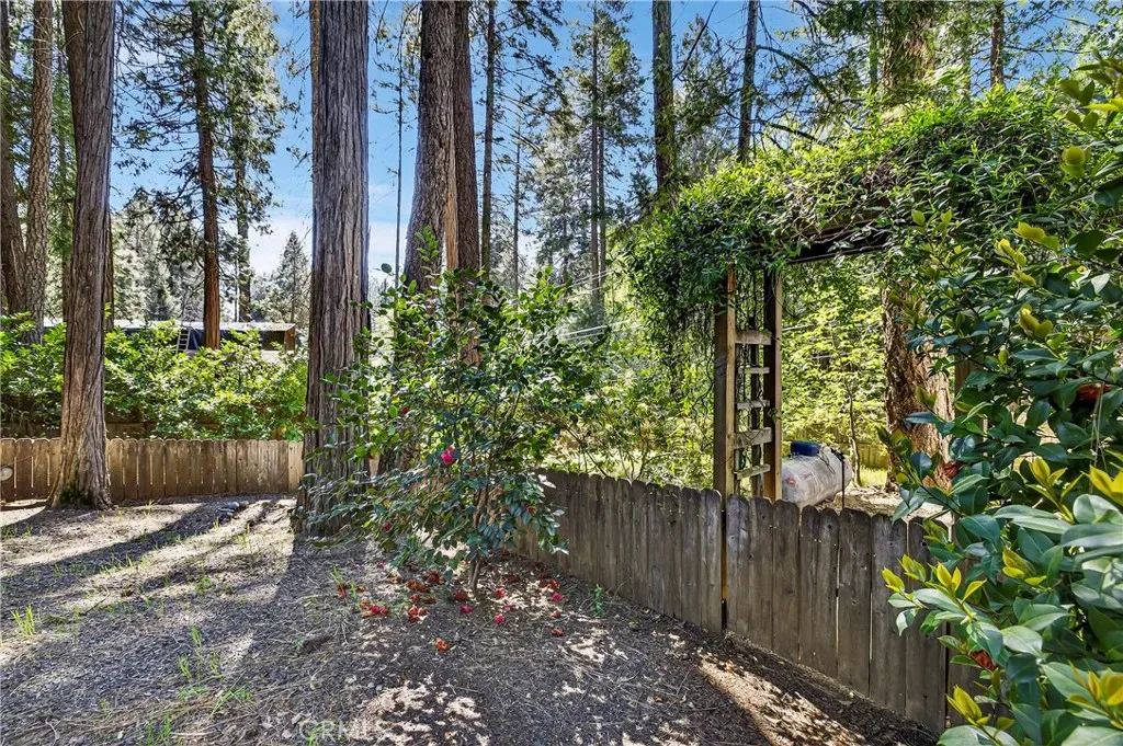 Nestled in the beautiful Magalia Pines is this One Owner Custom Built Home that is ready for a new owner. The owner had the plans drawn and completed the custom home in 2005. Wonderful curb appeal and a circle driveway welcomes you and your guests to the home. The home has an oversized 525 square foot 2-car garage. The composite front deck leads to a 9-foot covered front porch measuring 10X10 and accented with a knotty pine tongue and groove ceiling. The custom wood front door has a glass inlay. Upon entry you notice the open floor plan and the amazing 12-foot vaulted wood beam knotty pine ceiling and 9ft. ceilings throughout. The spacious living room has a custom gas fireplace with tile surround and beautiful wood mantle finishes the space. The large slider and windows open the views of the forest and the ever-changing forest views. The over 200 square foot deck is a fantastic place to entertain. The spacious kitchen has a 10-foot breakfast bar, travertine tiles counters, free standing propane oven/range, dishwasher, built in microwave, garden window and upgraded pull out drawers in the cabinets all overlooking the living room and dining room. Off the kitchen is a large laundry room with utility sink and large built in storage cabinets. Down the over 4-foot-wide hallway are two large built-in cabinets and the bedrooms and baths. The fantastic primary bedroom has great views of the forest through an 8-foot-wide picture window, and the primary bath offers 2 sink vanity with travertine tile counters, fully tiled shower with sliding glass doors and a huge walk-in closet. The guest bath offers a tub/shower combination with tiled walls, sliding glass doors and a tiled vanity with tile backsplash. Fully fenced side and backyard. Definitely enough room to develop boat, R.V. or trailer parking. The exterior of the home has cement style lap siding. The home is very warm and inviting and is ready for a new owner.