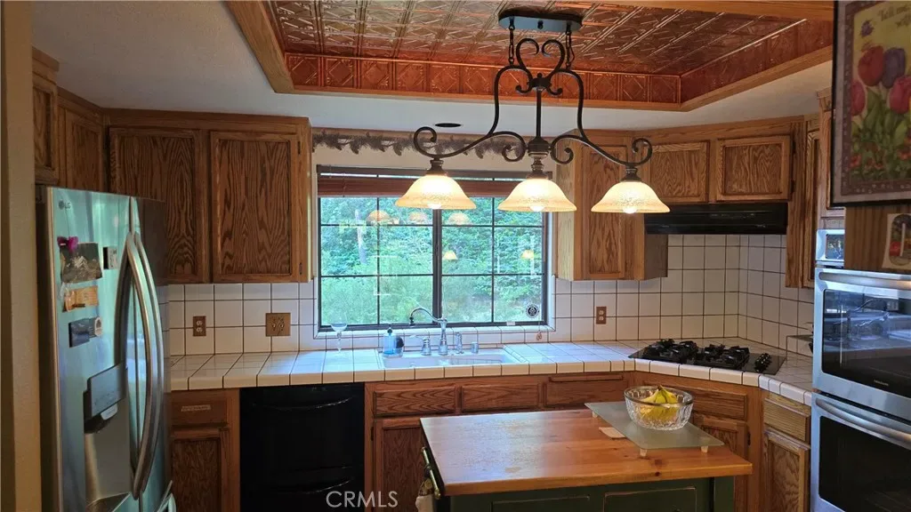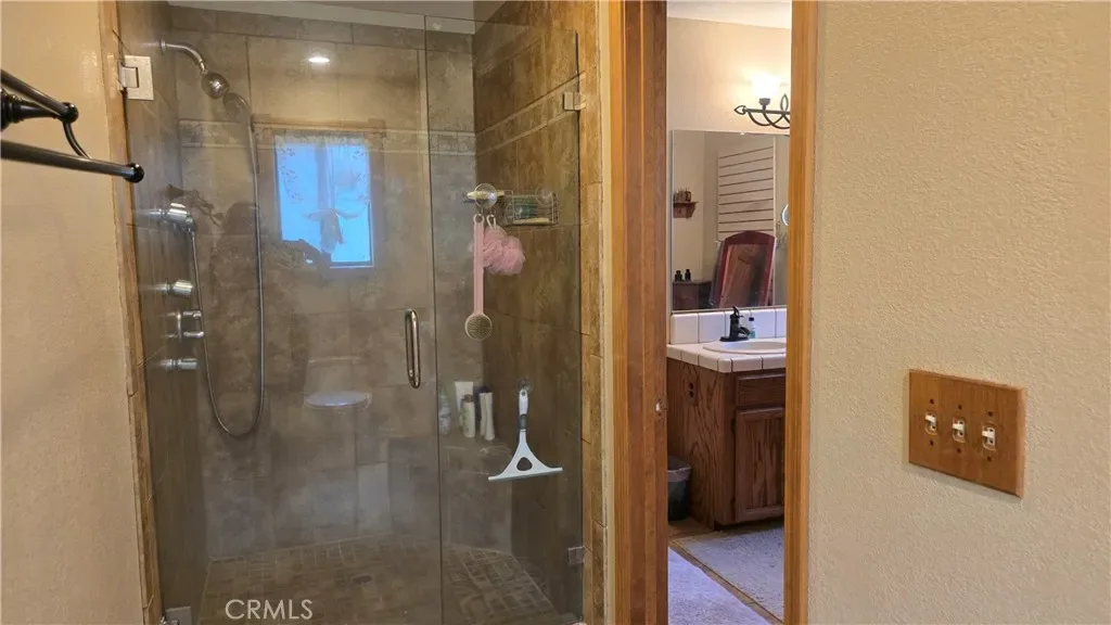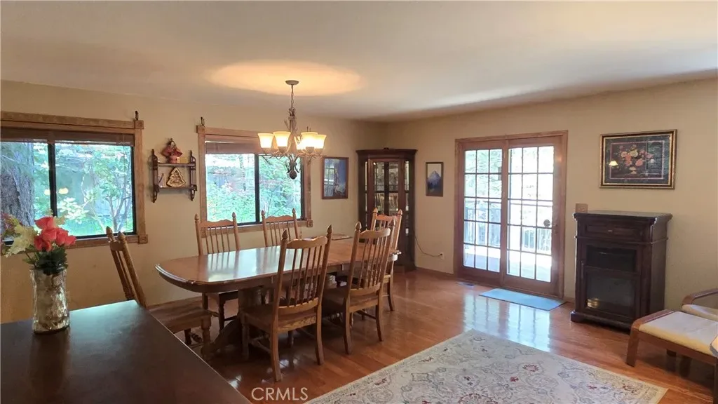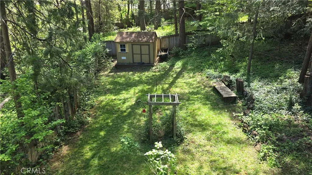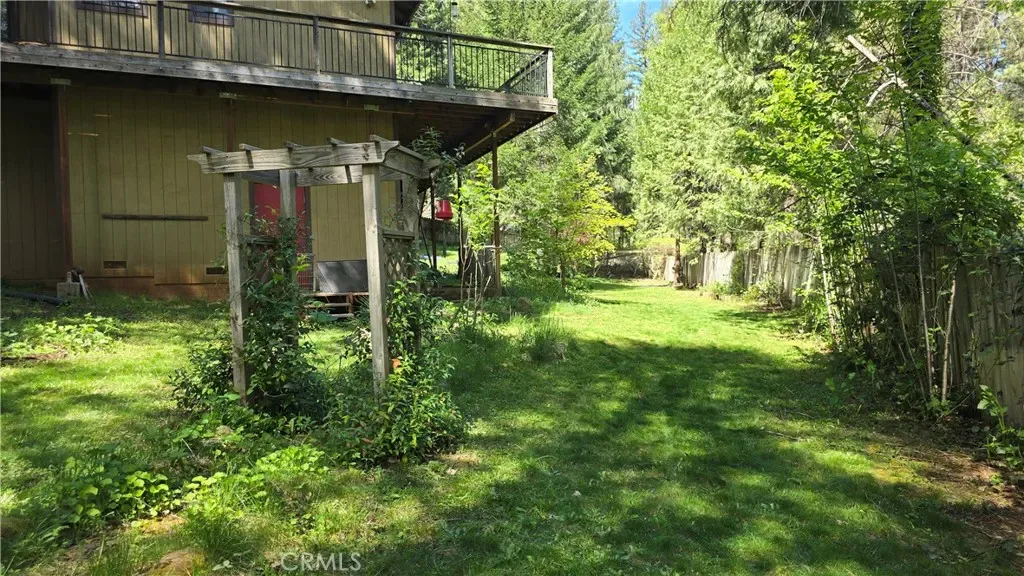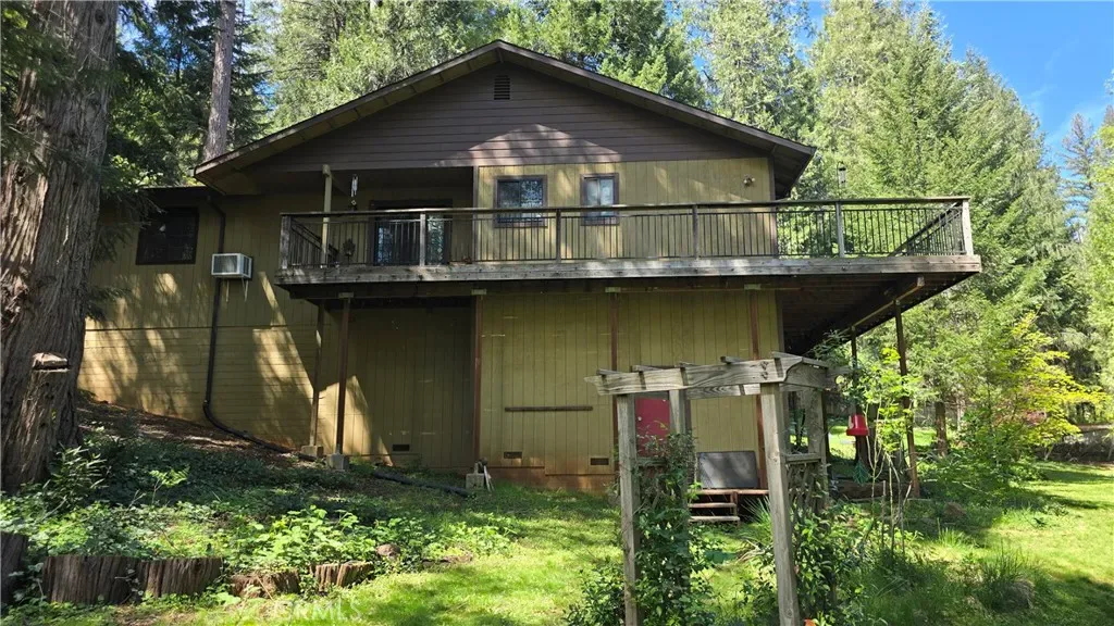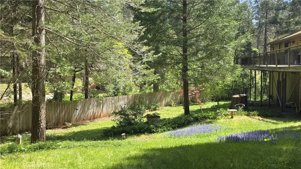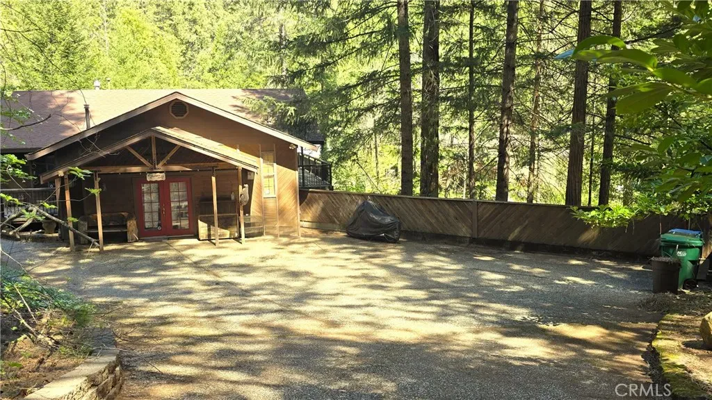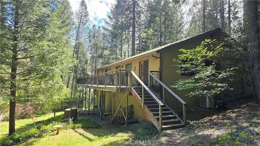 CREEKSIDE MOUNTAIN LIVING! Set alongside Middle Butte Creek, this property offers a tranquil setting with the soothing sounds of the babbling brook, a bricked patio with fire pit, shaded by towering pines—perfect for relaxing or entertaining. The fully usable property also features a side gate for easy backyard access and is easily maintained with full irrigation and drip systems. The property is also home to abundant year-round wildlife, including deer. In spring, the grounds come alive with vibrant blooms including azaleas, rhododendrons, periwinkle, columbine, foxgloves, dogwoods, and more. A large front deck and attractive tile entry welcome you into this inviting home, where the open living and dining areas feature gorgeous hardwood floors, a woodstove on a stone-accented hearth, and peaceful views of the private backyard. The kitchen is well-appointed with a newer refrigerator & double-ovens, a double-drawer dishwasher, attractive ceiling accents, and a breakfast bar that opens to the spacious dining area with French doors to the back deck—ideal for indoor-outdoor living. The primary suite offers both comfort and convenience, complete with a private door to the balcony-style back deck, a walk-in tile shower, large dressing and vanity area, and a double-door walk-in closet. Two additional guest bedrooms provide flexibility, with one featuring its own private balcony access and the other offering a large window with views of the flowering front yard. The hall bathroom offers ample vanity space, and a decedent jetted tub with a custom tile surround. Designed for efficiency and year-round comfort, the home includes a newer 5-ton American Standard energy-efficient heat and air system, a Lennox Healthy Climate media air cleaner, a heat exchange unit that distributes warmth from the fireplace to the bedrooms. The spacious game room has French doors to the outside, a pellet stove w/a river-rock hearth, plus a wall-mounted AC and attic fan. Additional highlights include an aggregate driveway with a large parking area and RV space. Beneath the home, a full workshop & storage area with a concrete patio entrance providing excellent functionality, along with a separate storage room on the lower south side. With multiple outdoor living spaces, ample indoor space, thoughtful upgrades, and a peaceful creek-side setting, this wooded mountain retreat offers a rare blend of natural beauty, functionality, and comfort all nestled at the end of a quiet cul-de-sac.