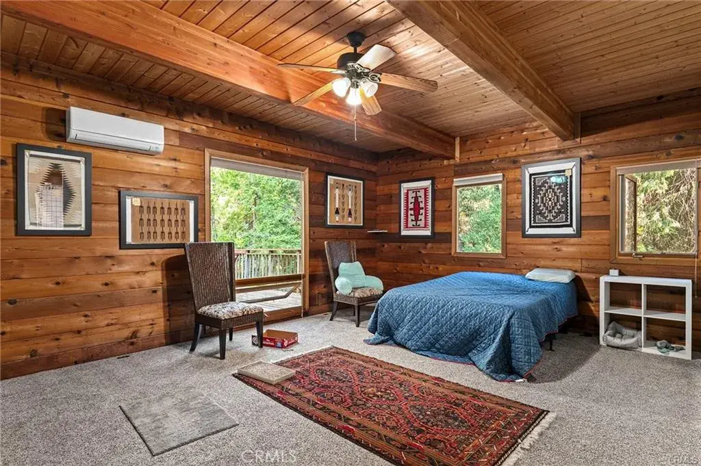 Peaceful private mountain home nestled among trees and wildlife sitting on roughly 14 acres! The home offers two primary suites, one on lower level and one on upper level, with additonal bonus room for 3rd bedroom upstairs. Bedrooms have new carpeting and spacious bathrooms with double sinks, jacuzzi tubs along with walk in showers. The main heart of the home offers, beamed ceilings, lots of windows for views and natural light, an open floor plan, connecting the living, dining, kitchen, and den areas. The den is an inviting space for intimate gatherings or quiet contemplation. The laundry room, equipped with a sink, cabinets, and a convenient half bath, with exterior service door to front deck. The kitchen showcases a newer fridge, double ovens, garbage compactor, microwave, dishwasher, and an appliance garage, complemented by ample pantry space. A gas log fireplace adds warmth to the living room, while ceiling fans throughout ensure optimal airflow. Downstairs, a spacious unfinished basement invites endless possibilities for customization, allowing you to tailor the space to your specific needs and preferences. Step outside to enjoy three decks, each providing a tranquil retreat amidst the natural beauty, with the main front deck just finished and all new with custom lattice work railings. Over the last year the seller has installed full owned solar with two Enphase battery backs ups and a car charging hook up. New roof in 2024 as well prior to Solar, new high end split systems for heat and air, one in main room downstairs and two units in each bedroom. Seller has also completed new decking, added a covered carport, gravel in driveway, and created a wonderful fruit tree garden with an amazing array of choices. The home sits on roughly 14 acres, solid good well with new engagement box for smooth motor operation and there is also a year round spring in the center of property below the home. If you’re looking for peace and tranquility, this may just be the one!!