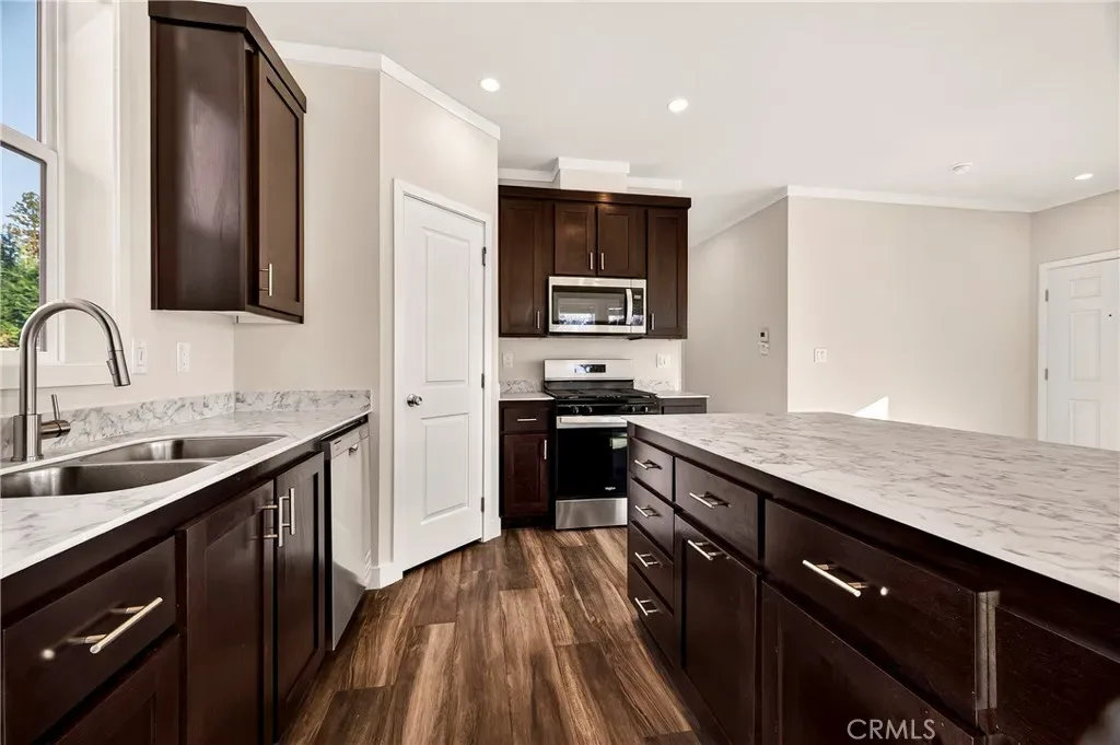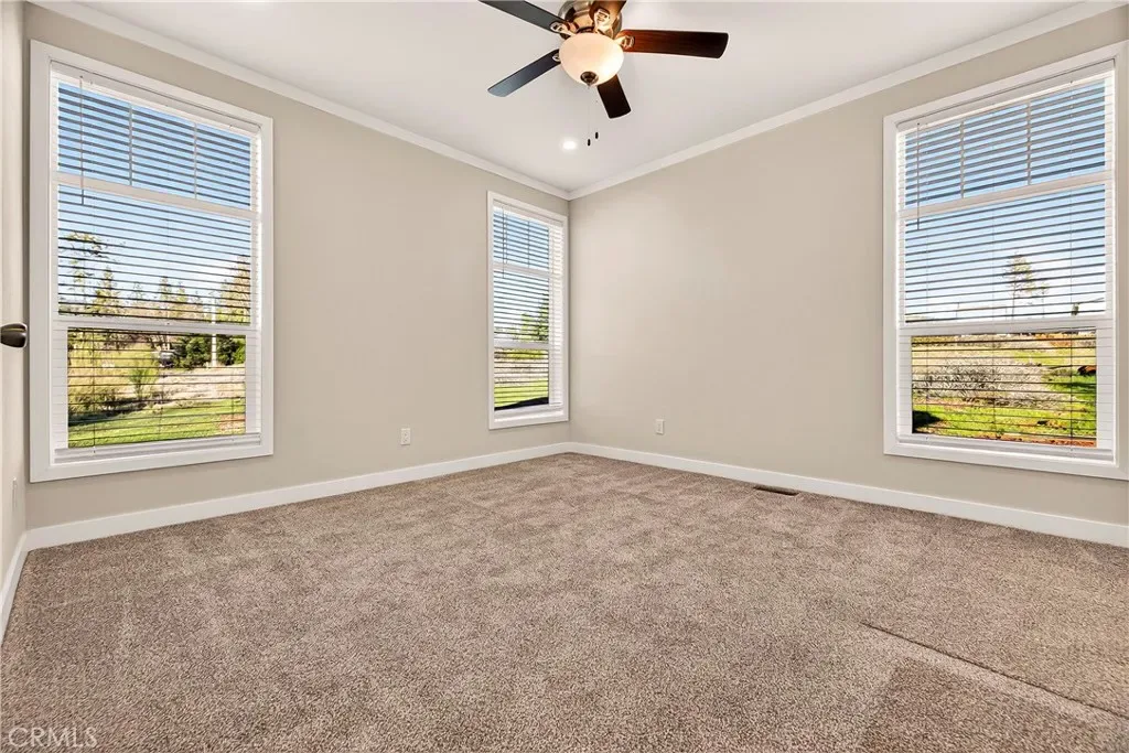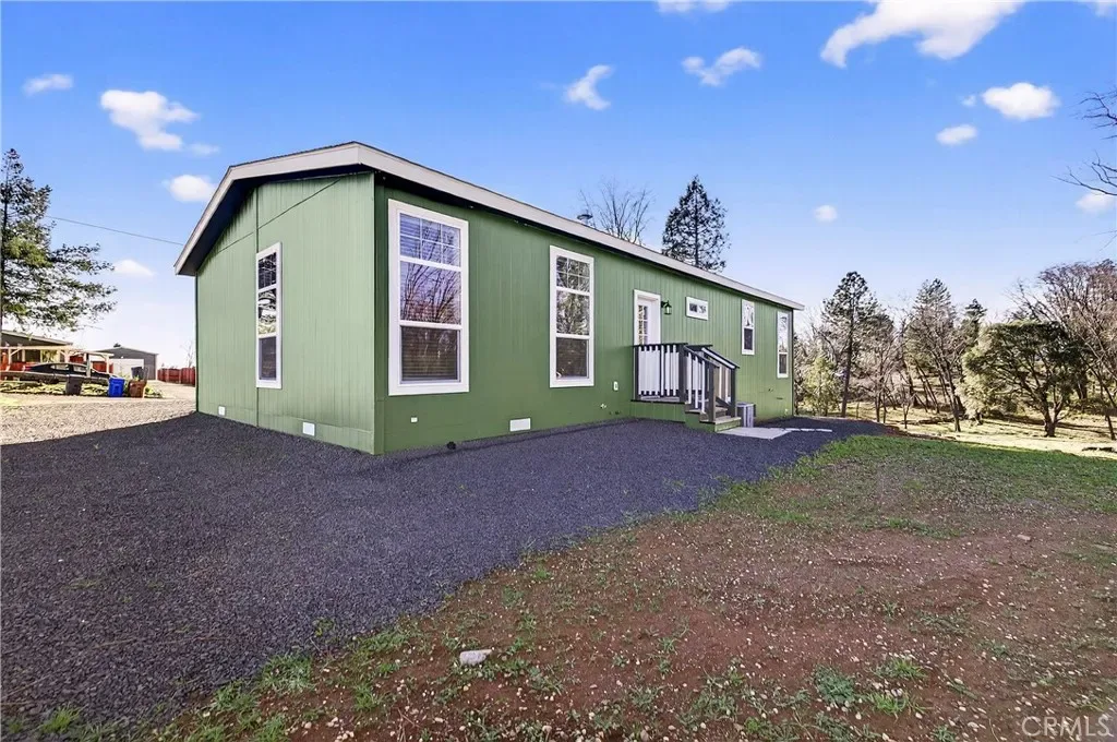 Welcome to this gorgeous, brand-new 2025 Champion Home Builders manufactured home, brought to you by a local builder, with a 7-year manufacturer’s warranty. This home is situated on a spacious 0.24-acre cul-de-sac lot in lower Magalia, only about 5 minutes from Paradise. This stunning 3-bedroom, 2-bath residence offers 1,386 sq ft of thoughtfully designed living space and a perfect blend of modern style and everyday comfort. The exterior features a 175 sq ft composite deck, a recessed front entry, eye-catching 24’ accent dormer, 12’ eaves with generous overhangs, concrete board siding, and exterior GFCI outlets. Step inside to discover a bright, inviting interior featuring LED recessed lighting throughout, 9′ ceilings, plush carpet and durable vinyl flooring, ceiling fans, and a spacious living room filled with natural light, enhanced by transom windows and wood-encased dual-pane windows. The show-stopping kitchen is both beautiful and functional, showcasing a large island with USB and Type-C outlets, a pantry, Energy Star stainless steel appliances, soft-close cabinetry and drawers, and a slide-out waste and recycling drawer. The dining area is conveniently located just off the kitchen, creating an ideal space for meals and entertaining. The home also features a well-appointed utility room with space for side-by-side washer and dryer, both gas and electric hookups, and extra storage cabinetry. Two generously sized guest bedrooms are complemented by a stylish hallway bathroom with a tub/shower combo and glass doors. Retreat to the luxurious primary suite, featuring a walk-in closet and a beautifully designed en-suite bathroom with dual sinks, a wood-framed mirror, abundant drawers, a bathroom closet, storage above the toilet, 2-foot-deep built-in shelving, and a spa-like shower with seating. Outside, enjoy a gravel parking area, backyard space, and convenient backdoor entry. This home is a part of the Paradise Property Owner’s Association and has A LOW ANNUAL FEE OF $310. This HOA offers access to fantastic amenities including a pool, tennis courts, clubhouse, bocce ball courts, a billiards room, and a private lounge. The location is hard to beat with the nearby conveniences such as the Magalia Community Center, Izzy’s, Holiday Market, walking trails and more. This exceptional, energy-efficient home, delivers modern finishes, thoughtful upgrades, an unbeatable location, and outstanding value—an incredible opportunity to own a move-in-ready, brand-new home.