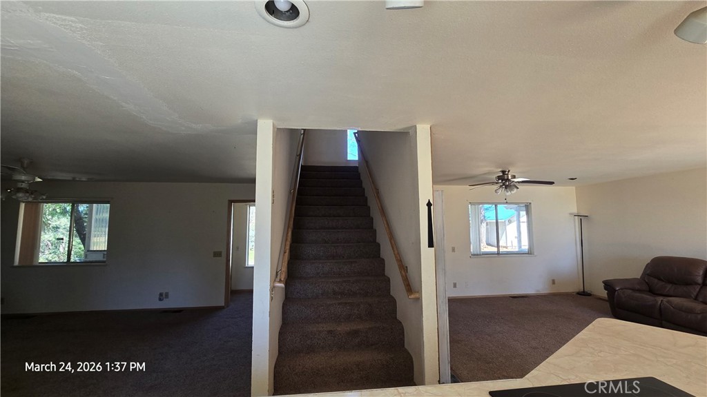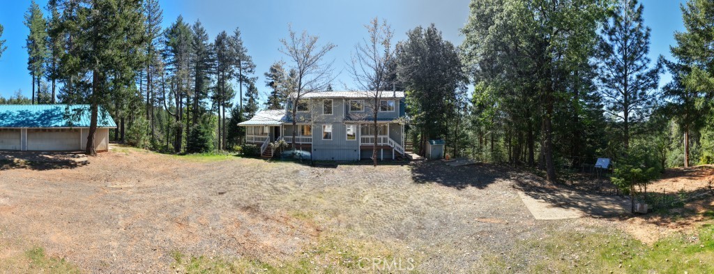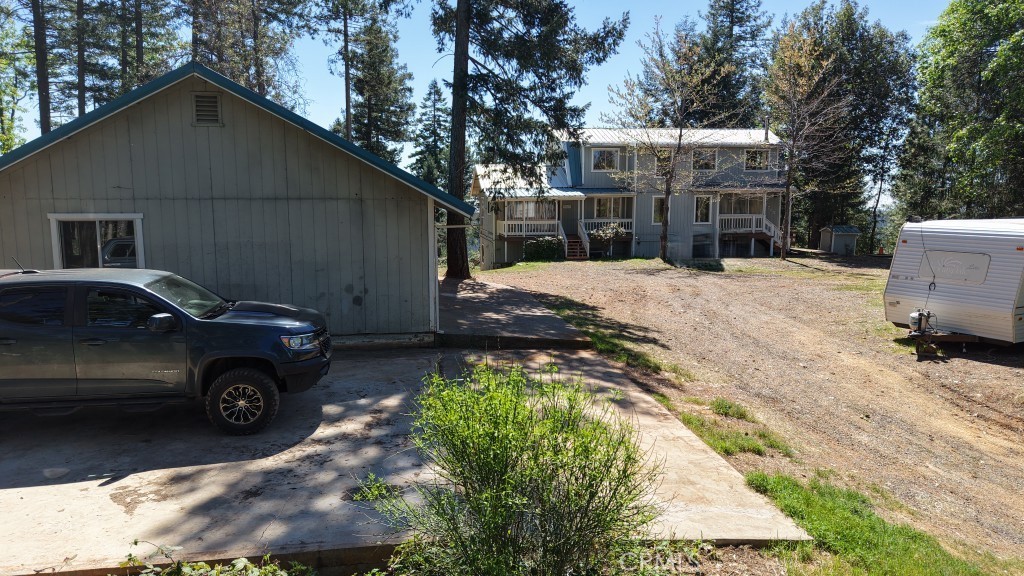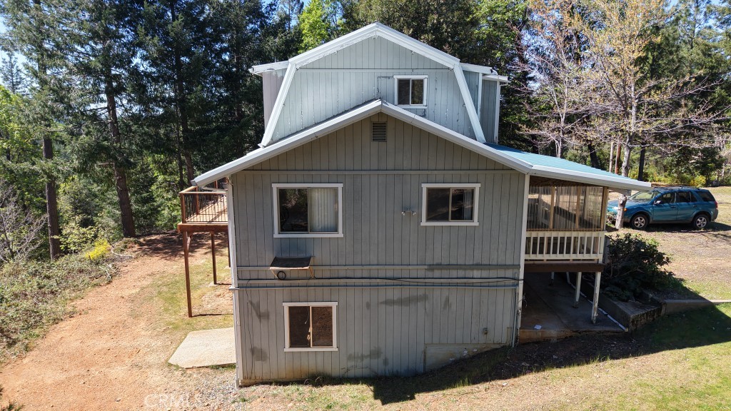 VERSATILE MOUNTAIN PROPERTY WITH EXPANSIVE VIEWS! This home is still a diamond in the rough, but there has been extensive infrastructure upgrades, and it offers multiple functional living and workspace areas. The private setting is complemented by a recently serviced well (147’ depth, approx. 15 GPM) and major electrical improvements, including a new main panel, sub-panels, PG&E meter, service lines, and pole. The main level offers a flexible layout with a living room and dining area open to the kitchen, plus a formal dining room that can serve as additional living, office, or flex space. The kitchen features both a vintage-style cookstove and a modern glass-top range, along with scenic forest views. A sliding glass door leads to a brand-new balcony deck showcasing long-range views extending to the Sutter Buttes. A separate family room with woodstove, large walk-in pantry/storage area, and dedicated laundry room add everyday functionality. One bedroom includes a private entrance from the front porch, ideal for a home office, guest quarters, or business use. Upstairs includes two spacious bedrooms, two full bathrooms, two loft areas, and a sitting space with elevated views matching the deck outlook. The lower-level basement provides additional private access, a half bath, two storage rooms, a large hobby/workspace, and two single-car garages on opposite sides. One garage includes a concrete firewood storage area with a built-in lift system for convenient transfer to the main level. Additional features include a detached oversized 3-car garage with shop space, multiple cleared areas for parking or future use, a large firewood corral, fenced garden area, and an existing foundation ready for another structure. Conveniently located off Coutolenc Road, with easy ACCESS TO THE WEST BRANCH OF THE FEATHER RIVER for swimming, fishing, and gold panning and PARADISE LAKE for fishing, hiking, and kayaking all within a few miles. The property also supports direct off-road access and horseback riding opportunities right from the land. Property offers flexibility for multi-use living, workspace, recreation, and expansion potential in a scenic foothill setting.