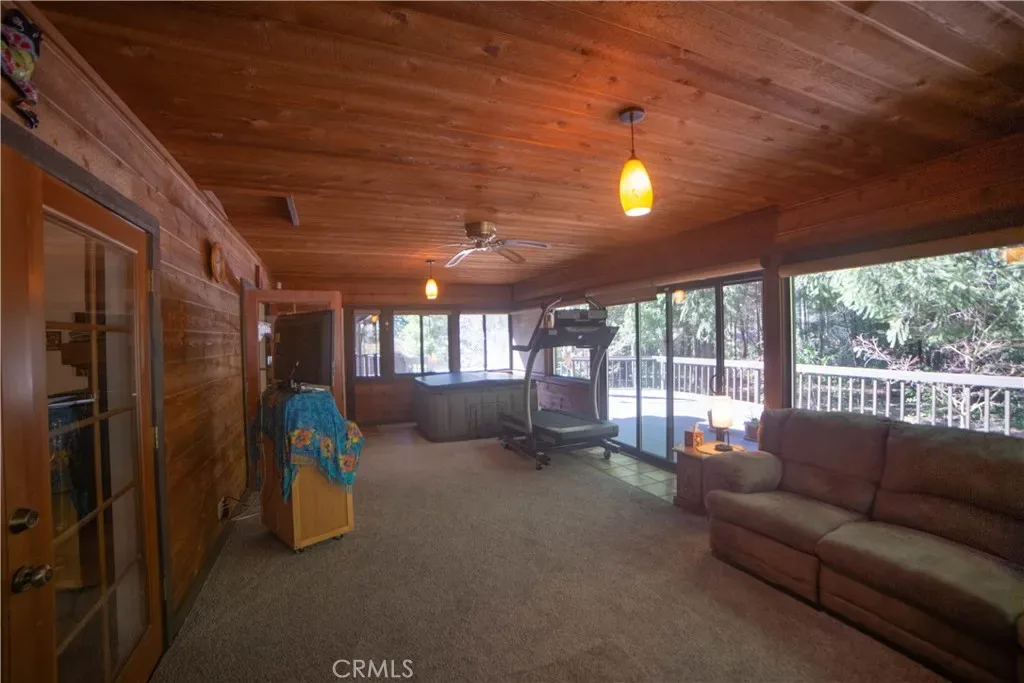 Outdoor living shines here with a wraparound deck perfect for entertaining or simply enjoying the peaceful forest views. Two hot tubs are included—one outdoors for summer relaxation and one in a dedicated indoor room for year-round enjoyment.