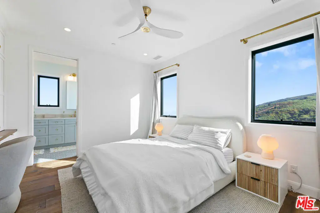 Discover unparalleled luxury in this newer construction, boasting 4 bedrooms and 3.5 bathrooms across an expansive 3,232 square feet. An additional 400-square-foot bonus room above the garage, currently utilized as a home gym, adds versatility and sophistication to this stylish residence.Thoughtfully designed for modern living, this custom home features extensive storage options both on the side and underneath the property. Eco-conscious buyers will appreciate the owned solar-paneled roof and EV charging station. The interior showcases state-of-the-art technology, including a Creston system, advanced camera and security systems, and a whole-home audio setup all effortlessly controlled via your smart home application. The primary bedroom is a sanctuary of tranquility, offering breathtaking ocean and mountain views that captivate upon entry. Additionally, all other bedrooms also provide stunning ocean and mountain views, creating a serene and picturesque atmosphere throughout the home. Perfect for entertaining, the home features an expansive deck with an outdoor bar, ideal for dining al fresco and embracing the true California lifestyle. A lower outdoor space with a jacuzzi spa overlooks the ocean, providing a tranquil retreat for relaxation and enjoyment. Nestled amidst exclusive scenic hiking and biking trails and in close proximity to some of Malibu’s most coveted beaches, this home provides the perfect blend of adventure and relaxation. Embrace the ultimate in luxury living with this exceptional property.
