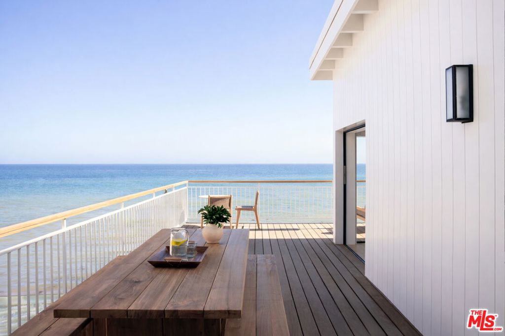 Rare Malibu Beachfront Home with Oceanfront Pool on Escondido Beach. Rarely does a Malibu beachfront property offer both direct sand frontage and a private pool overlooking the Pacific. Located on the highly sought-after sands of Escondido Beach, this beautifully renovated coastal retreat offers approximately 50 feet of ocean frontage and sweeping panoramic ocean views. Completed after an extensive four-year, to-the-studs renovation, the home has been thoughtfully redesigned for modern Malibu living. Walls of glass frame the ocean throughout nearly 3,000 square feet of light-filled living space, creating a seamless connection between the interiors and the coastline beyond. The residence is move-in ready and available fully furnished with Jenni Kayne furnishings, offering a refined and effortless coastal aesthetic. The home features four bedrooms and five bathrooms, providing comfortable accommodations for family and guests while maintaining the relaxed scale of a classic Malibu beach house. The main living areas open directly onto expansive oceanfront decks, ideal for entertaining, dining, and enjoying spectacular sunsets over the water. Just steps from the sand, the beachside pool and lounge terrace create a rare seaside setting seldom found among Malibu beachfront homes. Whether enjoying morning walks along the shoreline, afternoons by the pool overlooking the ocean, or evenings watching the sun set over the Pacific, the property captures the very best of Malibu’s coastal lifestyle. Ideally situated along Escondido Beach, with easy access to Geoffrey’s and Paradise Cove, this is a rare opportunity to own a turnkey, fully renovated Malibu beachfront home with a private pool, direct beach access, and panoramic ocean views. ***Seller financing available***