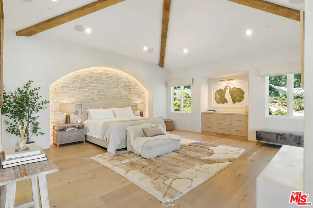 Available for June and September lease! A rare opportunity to lease one of Malibu’s most picturesque estates on Point Dume with access to Little Dume Beach! This exquisite French farmhouse offers the finest points of Malibu living. Meticulously constructed with the finest materials in 2022, the private compound spans nearly one acre and includes coveted beach rights to the surf and sand at Little Dume, one of Southern California’s most private and idyllic beaches. Upon entering through the gates, you are immediately captivated by the charms of a country home in the South of France with mature trees, a cobblestone driveway, and rustic stone accents. Inside, the home is exquisitely designed and offers a suite of high-end finishes, including limestone tile, extra-wide brushed oak wood floors, and lime-based painted walls. An expansive great room is the heart of the home and an entertainer’s dream, featuring soaring 23-foot vaulted ceilings with a reclaimed wood beam, a limestone slab fireplace, a cozy TV nook, and seamless indoor/outdoor flow through a wall of bifold doors. The kitchen is a chef’s delight, thoughtfully designed with Thermador stainless steel appliances, custom white oak cabinets, and deep-veined quartzite countertops. A sprawling backyard offers an expansive lawn with a pool/spa and a pristine Ipe wood deck. The lavish primary suite is situated at the far end of the home, creating a private sanctuary complete with a large fireplace, high wood-beamed ceilings, and French double doors that lead to a spacious terrace. A spa-like en-suite bathroom is adorned with authentic Italian Calacatta marble dual vanities, a luxurious soaking tub, a double-wide steam shower, and a massive walk-in closet. The main residence also boasts four additional bedrooms and a media room. The expansive grounds offer a detached guest cottage with one bedroom plus a loft, kitchenette, and living room complete with a cozy fireplace and an outdoor hot tub. The garage offers four parking bays, a professionally curated gym, and a spacious guest loft above, complete with a full bathroom, kitchenette, and laundry. A Control4 Smart Home Automation System is integrated throughout the home and grounds. Experience the epitome of the Malibu lifestyle, riding a golf cart to Little Dume for long days in the sun, and returning to a coastal oasis that exudes relaxation. Available for the months of June and September, 2026.