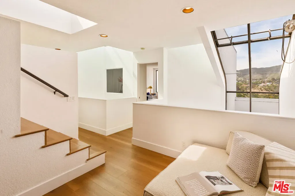 Newly updated ocean-view townhome with coveted Riviera III beach rights to Little Dume, the most private and idyllic sandy beach in all of Malibu! Situated in the outermost row of a gated complex, this rare property offers a gateway to the quintessential coastal lifestyle with sweeping mountain and ocean views. Inside, the home is flooded with natural light by an abundance of large skylights and offers a casual layout with exceptionally large square footage. The living room features high beamed ceilings, oversized windows with mountain views, and an Italian fireplace. The kitchen flows to a dining area and out onto a private sun-drenched patio, with endless views from Zuma to Buzzards Roost and beyond. Upstairs, the primary suite offers soaring ceilings with a private balcony, en-suite bathroom, and updated walk-in closet. The second bedroom features peaceful views and there is an additional full bathroom, entry level powder room, and a large loft that could be used as an office, media room, or converted to a third bedroom. An attached two-car garage offers ample storage and a washer/dryer. Point Dume is one of Malibu’s most iconic locations, and this townhome is ideally situated next to the shops and restaurants at Point Dume Village. Take your golf cart to Little Dume and enjoy the finest beach that Malibu has to offer, with sandy coves and gentle waves sheltered from the afternoon wind making it a private paradise.
