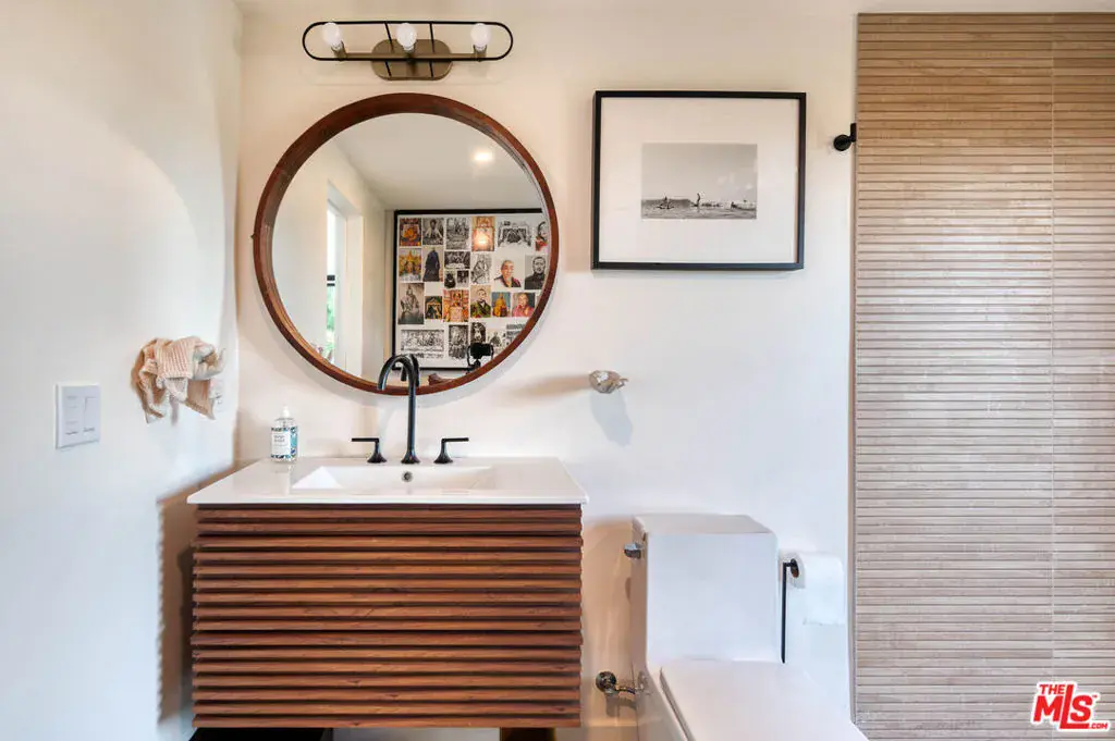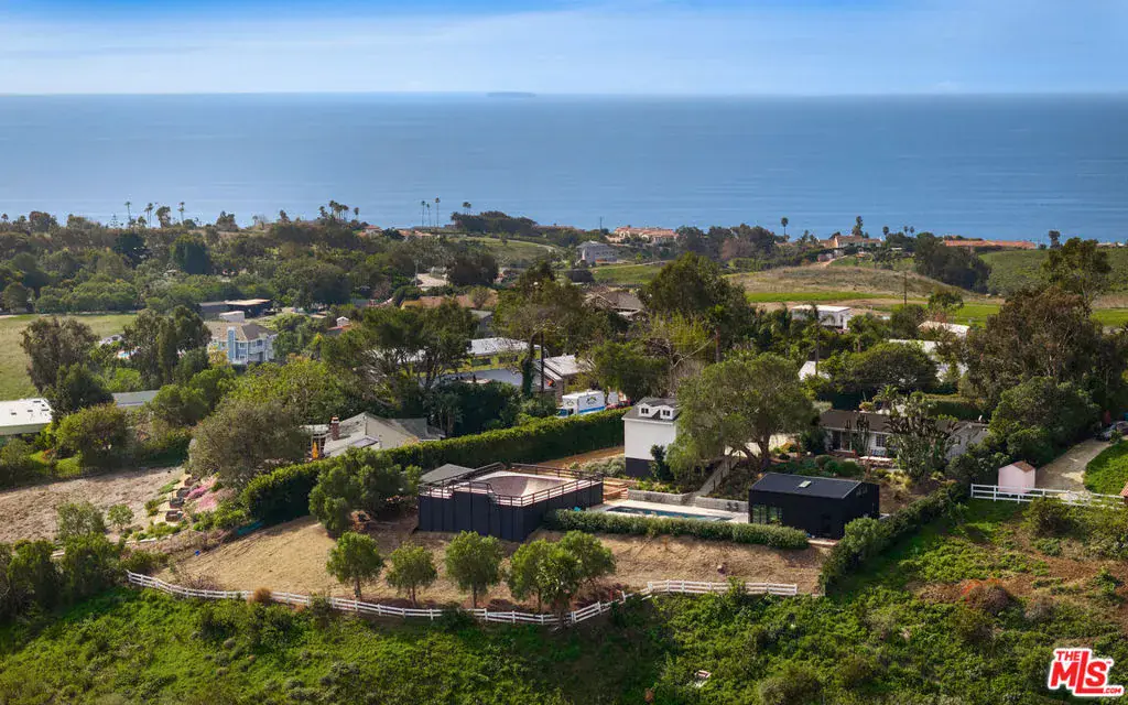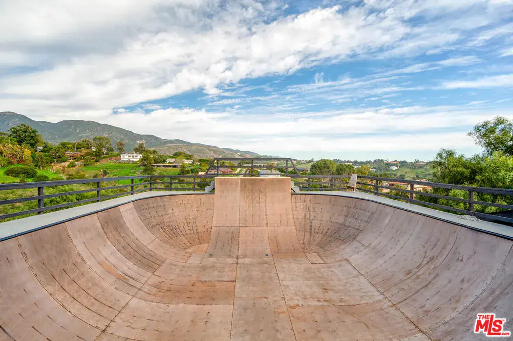 With loads of privacy, sweeping canyon and mountain views, and ample room for indoor/outdoor living and entertaining, this Malibu Park compound combines the bright, open feeling of mid-century style with a casual surf-ranch atmosphere. Located above Zuma on a gated, approximately 1.46-acre cul-de-sac lot, the property has a main house, a detached guest house, a pool house, a separate gym, a pool and spa. The single-level main house has a spacious living-dining-kitchen great room with high, beamed ceilings, wood-plank floors, a window seat, and sliding glass doors on two sides opening to gardens and patios. The kitchen has butcher-block countertops and quality appliances. Just outside is a covered patio for al fresco dining and barbecues, and a comfortable seating area around a fire pit. There’s a well-established raised-bed vegetable garden, lovely flowering trees, a hammock, and string lights. The main house has three bedrooms, including a primary suite with built-ins, a walk-in closet, doors to the patio and the side yards, plus a bath with a soaking tub and large garden windows. Upstairs is a large bedroom with vaulted ceilings, a built-in desk and cupboards along two sides, a sitting area, and double-paned windows with mountain and ocean views. Near the pool house is a long swimming pool and spa with a wide sundeck for relaxing and entertaining. At the opposite end of the pool is a permitted skating bowl with sensational ocean and mountain views. Finally, there is the gym. The property is landscaped and irrigated and has on-demand hot water, a Tesla charger, new HVAC system, Fleetwood windows, security system, and generous on-site parking, and is approximately one mile from both Zuma beach and Malibu schools. Includes plans and approvals for a remodel and 900sf extension.