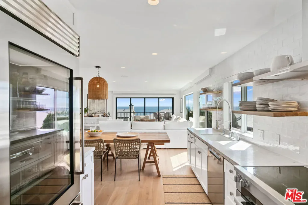 Spend the summer in this beautifully remodeled, ocean-view townhome in the highly sought-after Zuma Bay Villas. Perched on a serene bluff directly above iconic Zuma Beach, this light-filled residence offers a seamless blend of comfort, style, and relaxed coastal living. Thoughtfully designed with a chic, beach-lifestyle aesthetic, the open floor plan features a spacious living room with walls of glass that open to a sun-drenched balcony, capturing sweeping ocean, coastline and whitewater views. The gourmet kitchen is well-appointed with a large center island, stone countertops, custom cabinetry, and premium Miele and Sub-Zero appliances – perfect for easy summer entertaining. Upstairs, three inviting bedrooms include a generous primary suite with stunning ocean views and a spa-inspired bathroom. Two additional bedrooms provide comfortable accommodations for family or guests. Enjoy indoor-outdoor living with a private patio, two-car garage, and ample storage for all your beach essentials. Just moments away, private steps lead directly down to the sandy beach and Sunset restaurant below. Zuma Bay Villas is a 24-hour guard-gated community offering resort-style amenities including a heated swimming pool and spa, tennis court, and beautifully maintained grounds. A rare opportunity to experience the best of Malibu living active, scenic, and serene. Available this June through September.