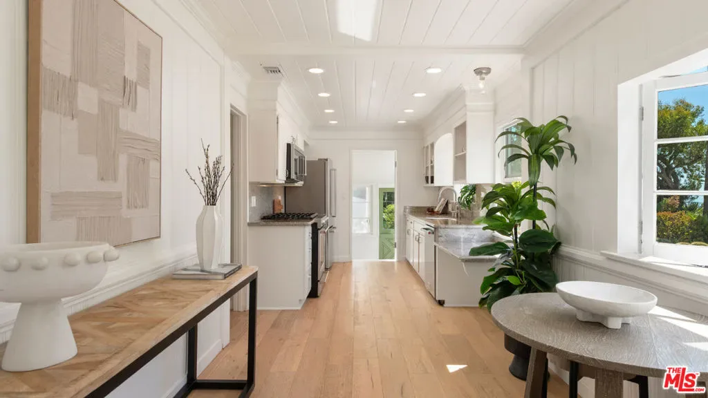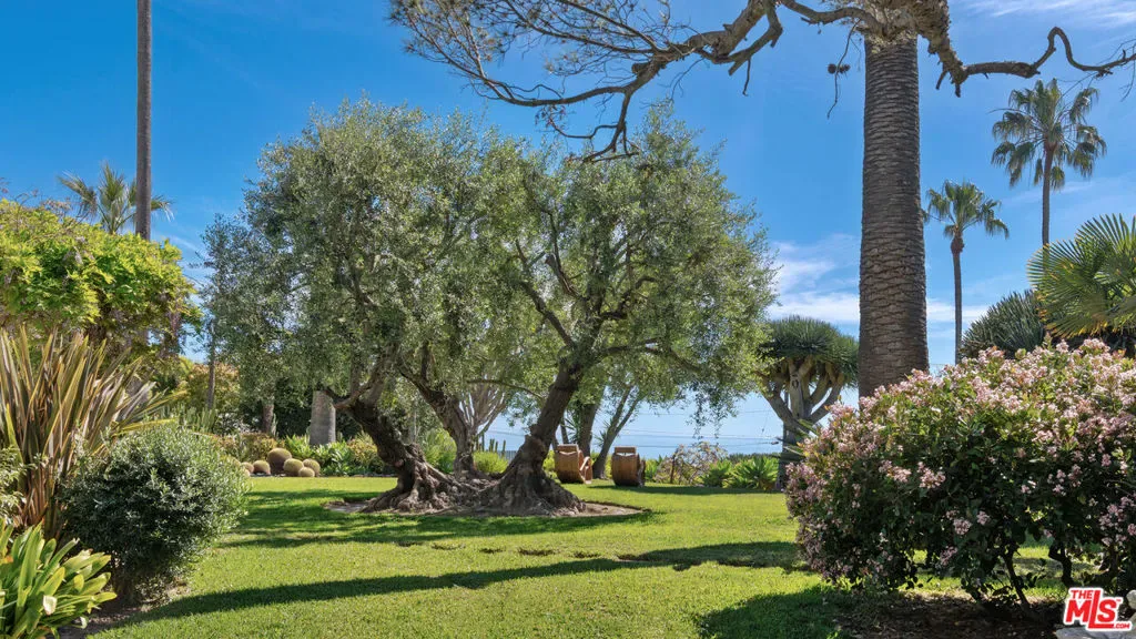 Tucked along a quiet stretch of Baden Place, this historic Malibu property offers rare privacy, charm, and sweeping ocean views on beautifully landscaped grounds. One of the area’s original homesites, the main residence thoughtfully updated over time, blending classic coastal character with bright, airy living spaces designed for relaxed Malibu living.A gated driveway with generous parking welcomes you to the property, where a paver walkway and brick steps lead to a glass and wood entry door. Inside, the open floor plan is filled with natural light and anchored by warm wood floors and dramatic wood beam ceilings. The living room centers around a striking fireplace with wood mantel and stone hearth, while large windows frame surrounding greenery and ocean views beyond.The open living and dining spaces flow easily toward the backyard, creating a seamless connection between indoor comfort and outdoor entertaining. The dining area enjoys clear ocean views and opens directly to the patio and lawn. The nearby kitchen features granite countertops, KitchenAid appliances including a five burner range, extensive built-ins, and a breakfast area positioned beside French windows to capture ocean views. A nearby laundry room with stacked washer and dryer, utility sink, and Dutch door provides convenient access to the backyard and sunroom.The bedroom wing includes several light-filled bedrooms and baths, including a primary suite with ocean views, generous closet space, and an ensuite bath with tiled floors, vanity, shower, and soaking tub. Additional bedrooms feature wood floors, sliding glass doors, and easy access to outdoor areas, offering flexibility for guests, office space, or creative use.The grounds are truly the heart of the property. A spacious patio and expansive grassy lawn overlook Zuma’s whitewater and the Pacific beyond, creating an exceptional setting for gatherings or quiet moments outdoors. The property is known for its remarkable gardens and mature specimen trees, including an 80 year old olive tree, macadamia nut trees, eucalyptus, yucca, palms, fig, and striking dragon’s blood trees, along with extensive cactus and native plant gardens that give the landscape its distinctive character.A stone path winds through the gardens to a sizable two bedroom guest house with detached garage, offering additional living space ideal for visitors, extended family, or rental use. With its own address and driveway access from Baden Place, and mature landscaping providing natural separation, the guest residence offers a true sense of independence from the main home.With only four owners in its history, this special Malibu property presents a rare opportunity to own a piece of Malibu’s heritage, offering timeless character, exceptional gardens, and beautiful ocean views in a uniquely private setting.