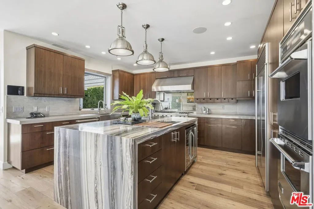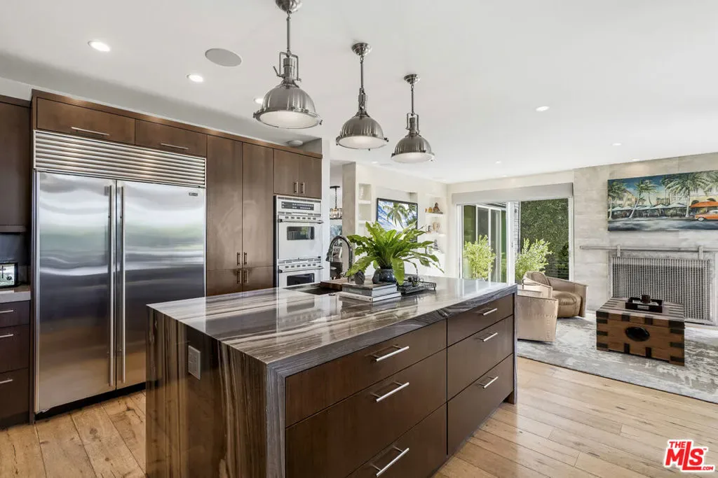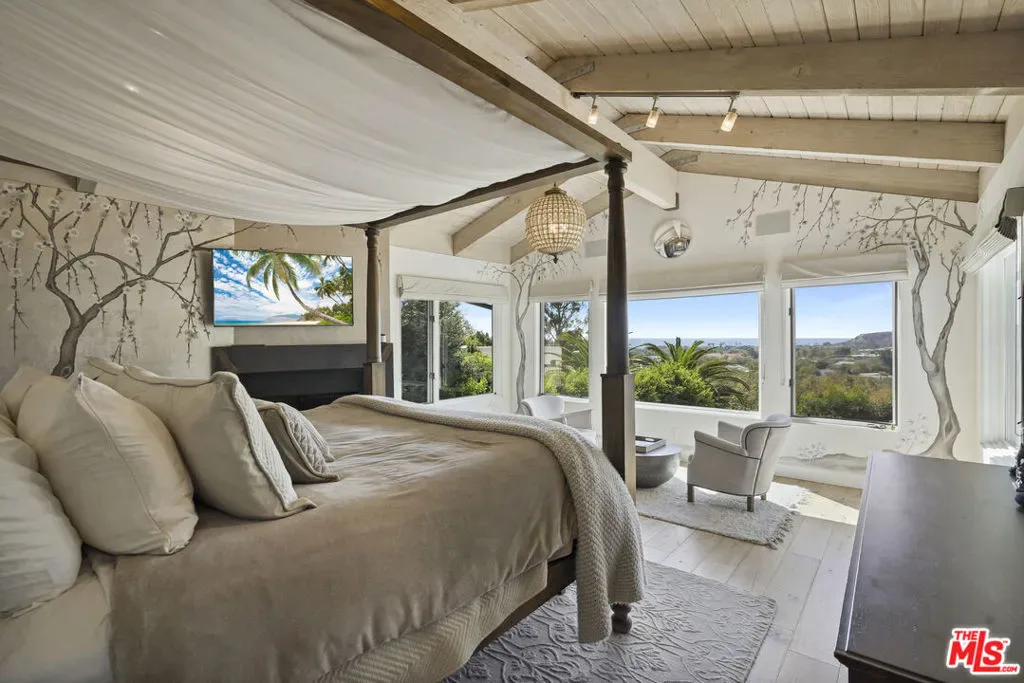 Oceanview home in Malibu’s Prestigious 24 hour guard gated neighborhood of Serra Retreat; within walking distance to the beach, shopping and restaurants. This extraordinary home offers a rare combination of privacy and ocean/mountain views and can be purchased fully furnished. Located just minutes from Surfrider Beach, Malibu Pier, Soho House, Malibu Farm, and various boutiques and cafes, this home presents an unparalleled coastal lifestyle that is truly one-of-a-kind. Serra Retreat is renowned for its serene beauty, and its iconic history. The 26-acre Serra Monastery adds a spiritual calm to this already exclusive and highly sought-after neighborhood. This is an opportunity to own a piece of Malibu’s most prestigious enclave, one of the few ocean view homes in Malibu close to its vibrant center, at a price point below $10M. This fully remodeled modern craftsman-style home seamlessly blends luxury and comfort. Every detail has been thoughtfully curated, from the spacious living areas with vaulted wood ceilings and hand-painted murals, to the gourmet chef’s kitchen featuring a stunning marble waterfall island. Step outside into your private sanctuary, complete with a saltwater dipping pool, waterfall, spa, and a covered atrium with fire pit and BBQ, perfect for entertaining or relaxing in privacy. The property also includes a small detached office, ideal for remote work. Equipped with cutting-edge smart technology, including Lutron lighting, Sonos audio, a full security system, intercom, and iPhone-controlled features, this home is as functional as it is beautiful. With a newer metal roof ensuring durability and long-term protection, this home offers the ultimate blend of artistry, luxury, and beach lifestyle. Serra Retreat is waiting for you; where world-class living and surfing meets the soul of Malibu.