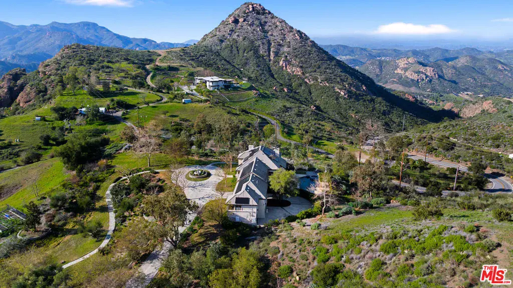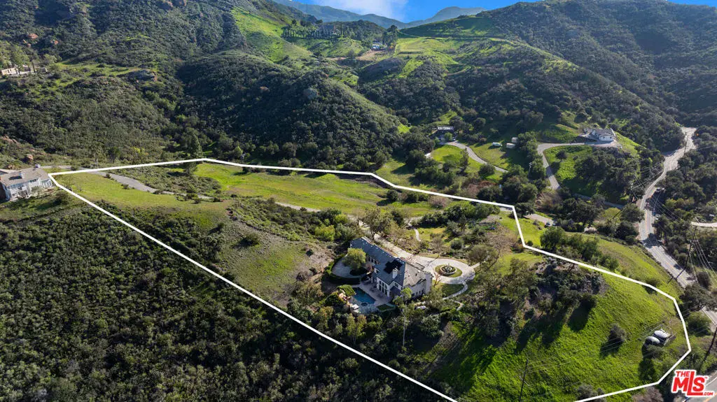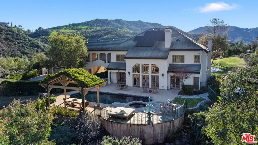 Tucked into the Malibu mountains just minutes from Agoura and Westlake Village, this exceptional estate offers a rare blend of privacy, space, and natural beauty across 4.5 acres. Soaring ceilings and a grand staircase create a striking entry, while multiple fireplaces add warmth throughout. The open kitchen flows into the main living areas and formal dining room, well suited for everyday living and entertaining. The primary suite is its own private wing with a spa-like bath, soaking tub, and peaceful mountain views. Enjoy sweeping vistas from the pool and spa, with multiple outdoor areas designed for easy indoor-outdoor living. The lush landscaping and fully enclosed garden provide a private, serene outdoor retreat. The expansive lot offers exceptional privacy, ample parking, a three-car garage, solar panels, peace and privacy. Welcome to your own exclusive estate.